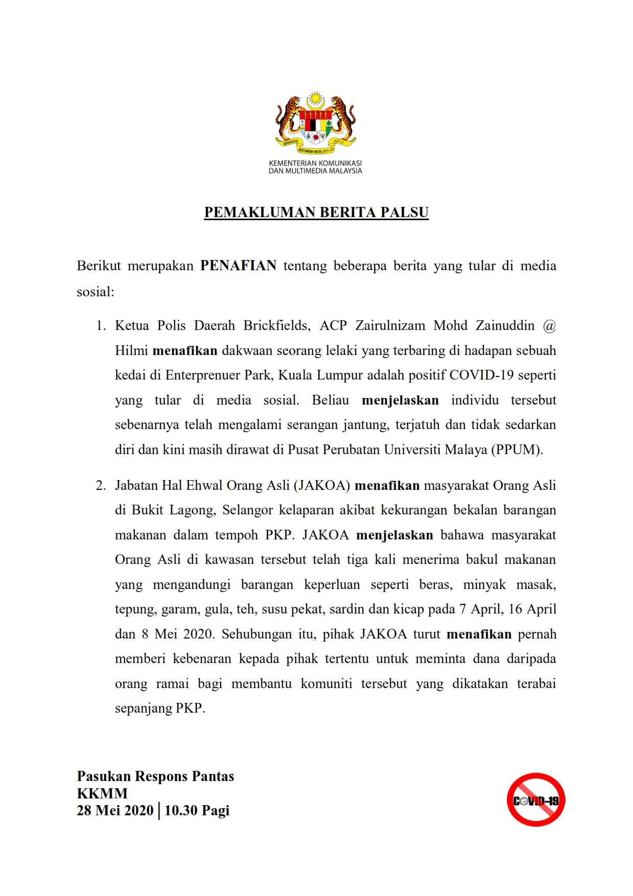 Pemakluman Berita Palsu SKMM 28/05/2020 1030 AM Aiman Siaran Media 28 Mei 2020 Jumlah paparan: 1052 Rating: ( 0 Rating ) Sila beri kadar Undi 1 Undi 2 Undi 3 Undi 4 Undi 5 Lihat / Muat Turun PDF Facebook Twitter Seterusnya Seterusnya
