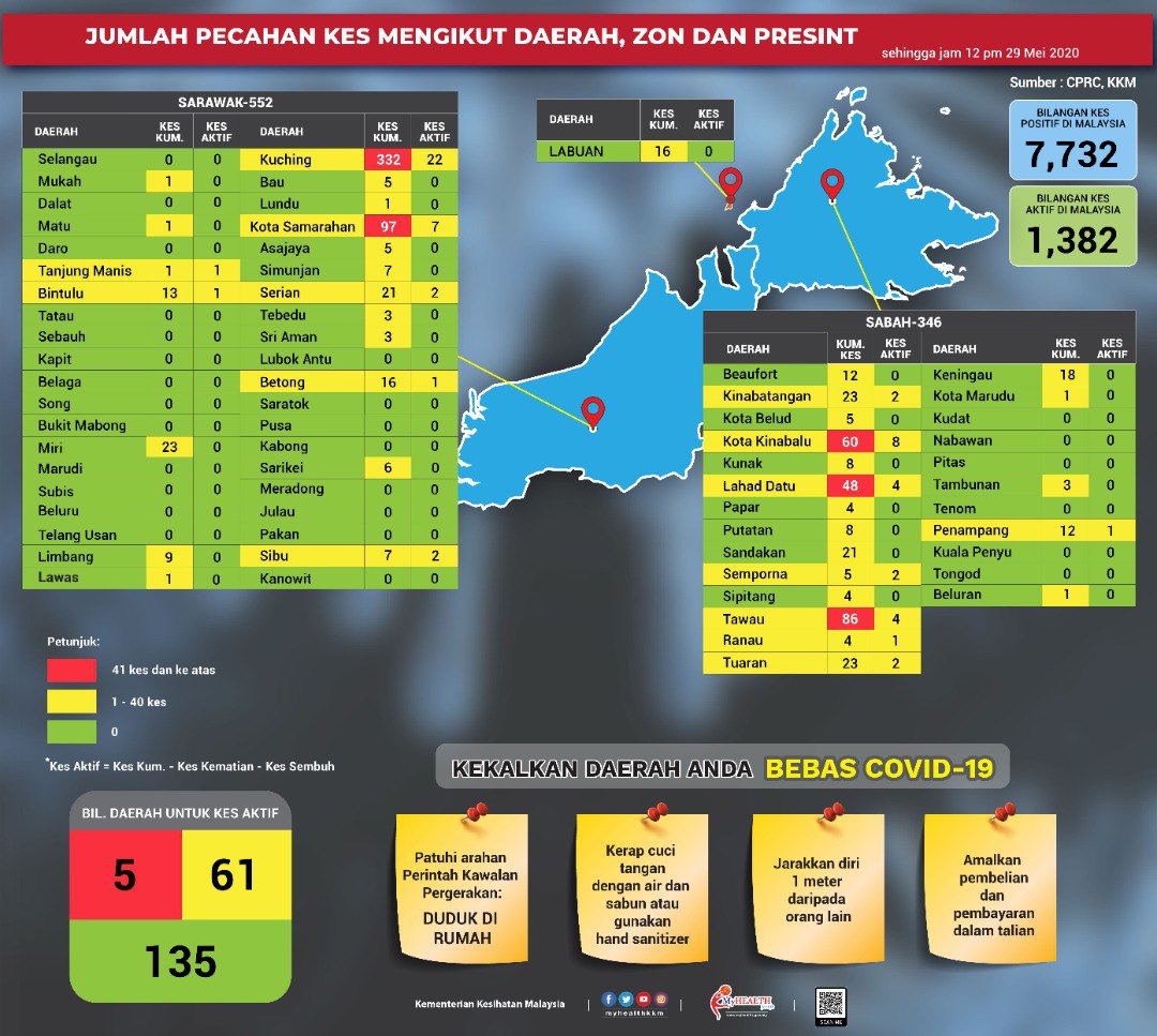 Statistik Pecahan Kes COVID-19 Mengikut Negeri & Daerah Di Malaysia 29/05/2020 1200 PM Aiman Siaran Media 29 Mei 2020 Jumlah paparan: 1147 Rating: ( 0 Rating ) Sila beri kadar Undi 1 Undi 2 Undi 3 Undi 4 Undi 5 Lihat / Muat Turun JPG 1 Lihat / Muat Turun JPG 2 Facebook Twitter Seterusnya Seterusnya