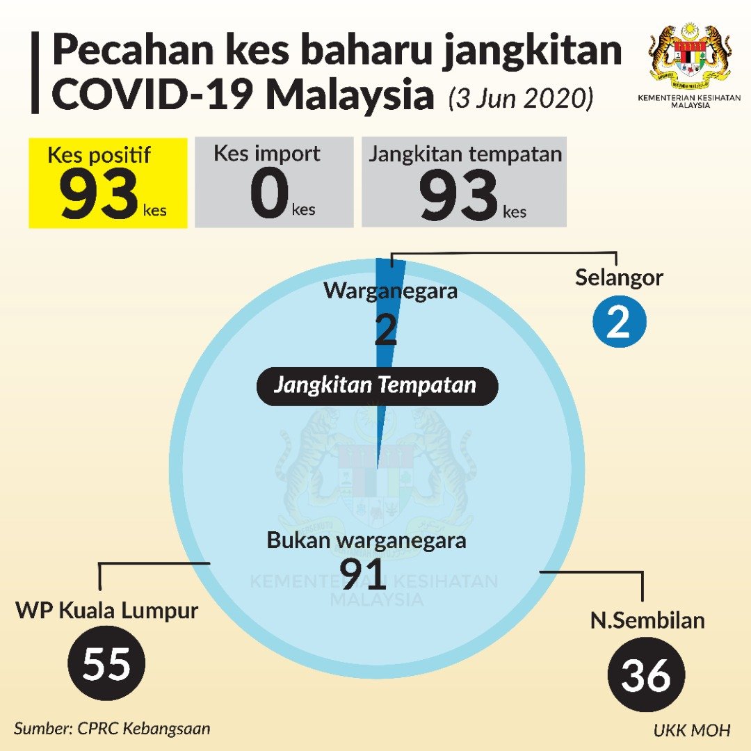 Statistik Pecahan Kes Baharu Jangkitan COVID-19 Malaysia 03/06/2020 Aiman Siaran Media 03 Jun 2020 Jumlah paparan: 929 Rating: ( 0 Rating ) Sila beri kadar Undi 1 Undi 2 Undi 3 Undi 4 Undi 5 Lihat / Muat Turun JPG Facebook Twitter Seterusnya Seterusnya