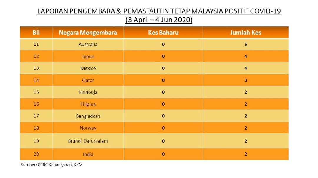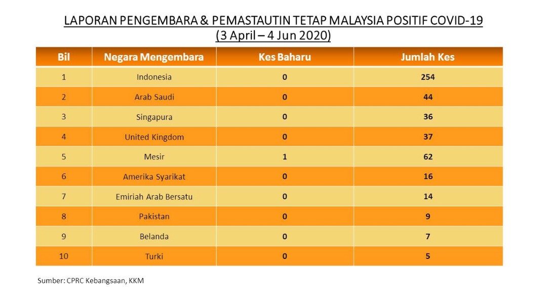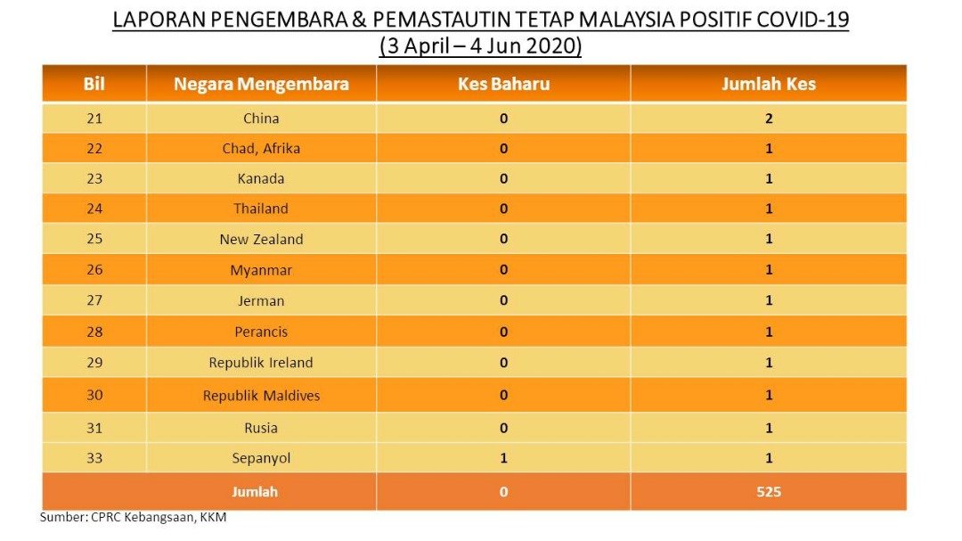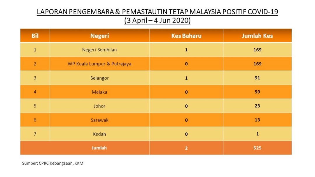 Laporan Pengembara & Pemastautin Tetap Malaysia Positif COVID-19 04/06/2020 Asrul Siaran Media 04 Jun 2020 Jumlah paparan: 611 Rating: ( 0 Rating ) Sila beri kadar Undi 1 Undi 2 Undi 3 Undi 4 Undi 5 Facebook Twitter Seterusnya Seterusnya