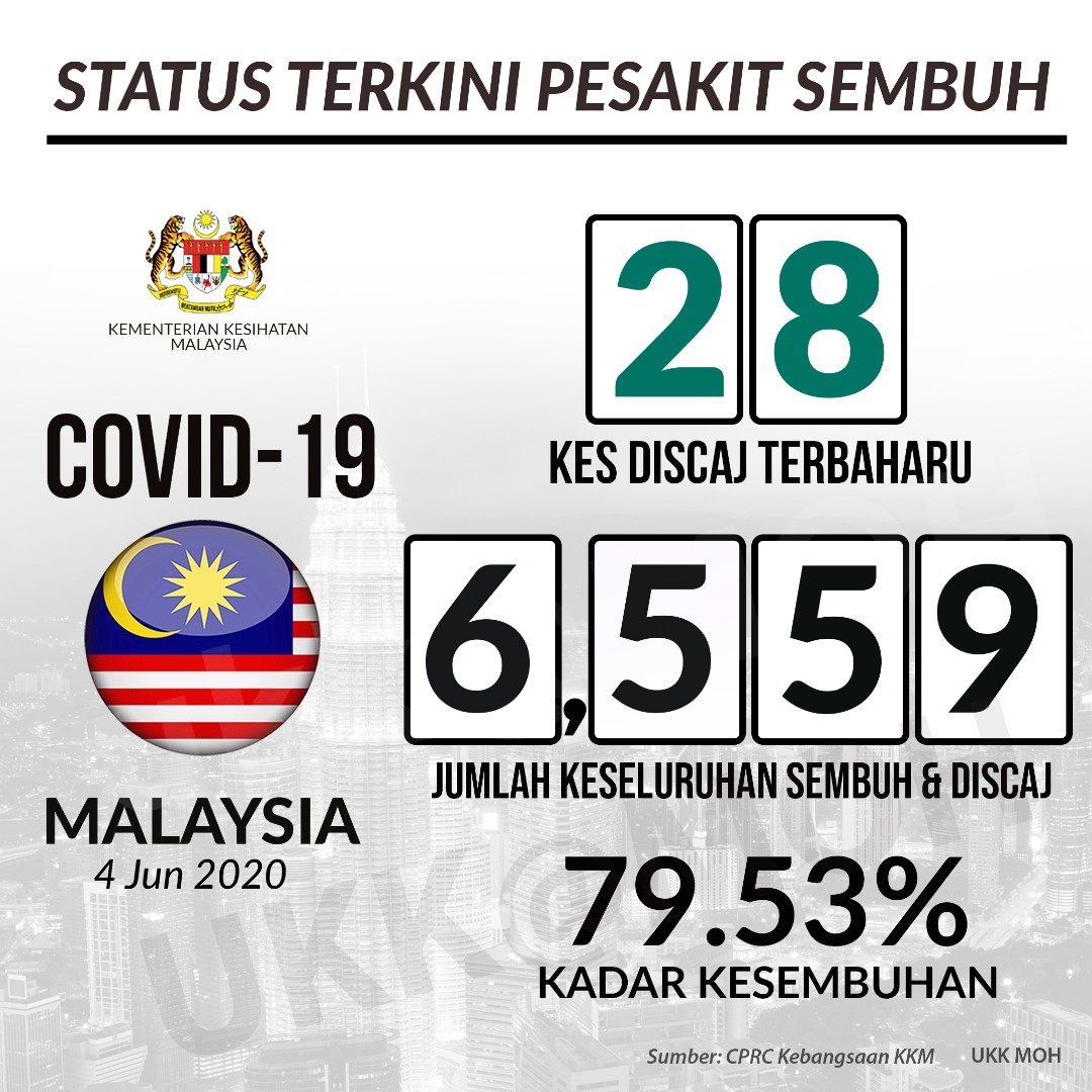 COVID-19 - Jumlah Keseluruhan Kes Discaj 04/06/2020 Asrul Siaran Media 04 Jun 2020 Jumlah paparan: 923 Rating: ( 0 Rating ) Sila beri kadar Undi 1 Undi 2 Undi 3 Undi 4 Undi 5 Lihat / Muat Turun JPG Facebook Twitter Seterusnya Seterusnya