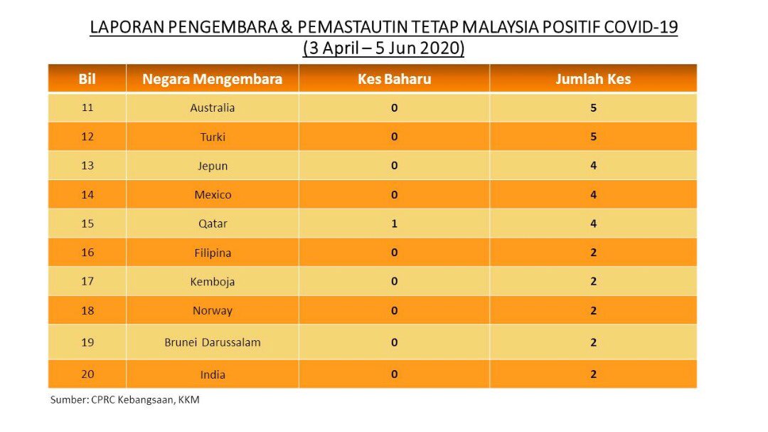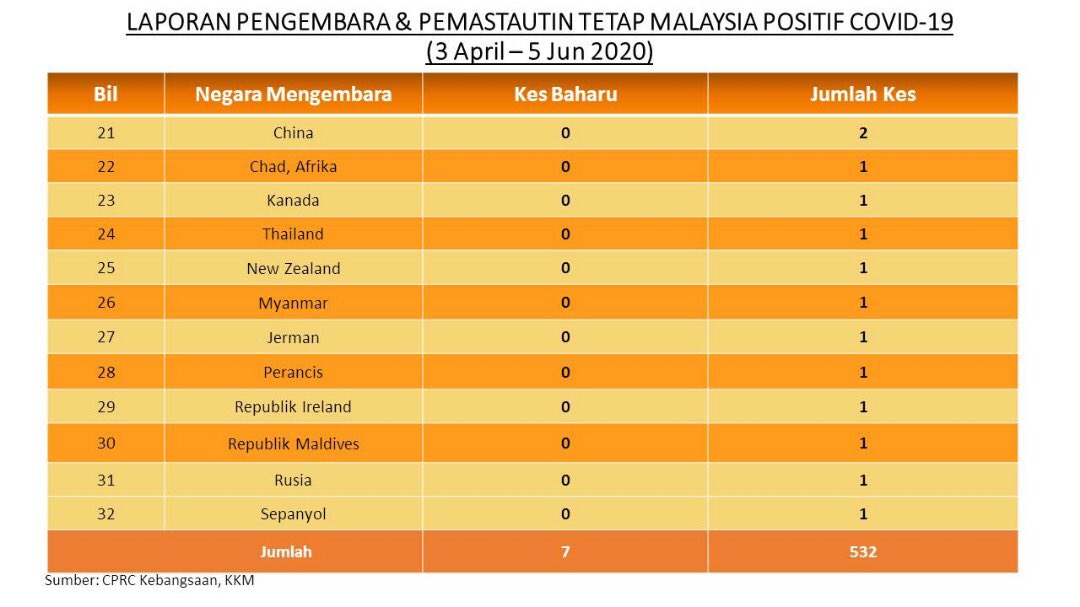 Laporan Pengembara & Pemastautin Tetap Malaysia Positif COVID-19 05/06/2020 Asrul Siaran Media 05 Jun 2020 Jumlah paparan: 917 Rating: ( 0 Rating ) Sila beri kadar Undi 1 Undi 2 Undi 3 Undi 4 Undi 5 Facebook Twitter Seterusnya Seterusnya