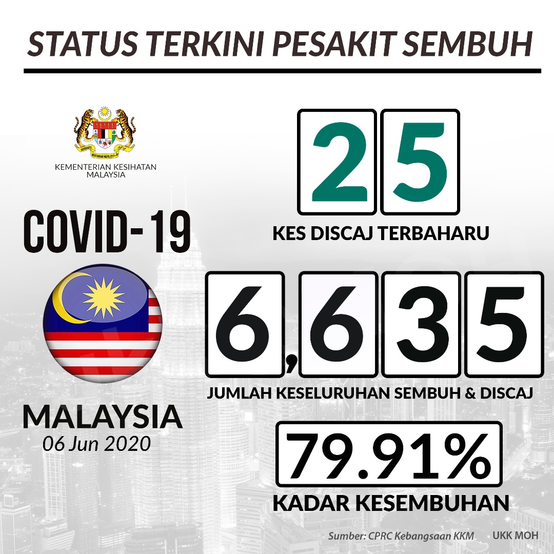 COVID-19 - Jumlah Keseluruhan Kes Discaj 06/06/2020 Asrul Siaran Media 06 Jun 2020 Jumlah paparan: 901 Rating: ( 0 Rating ) Sila beri kadar Undi 1 Undi 2 Undi 3 Undi 4 Undi 5 Lihat / Muat Turun JPG Facebook Twitter Seterusnya Seterusnya