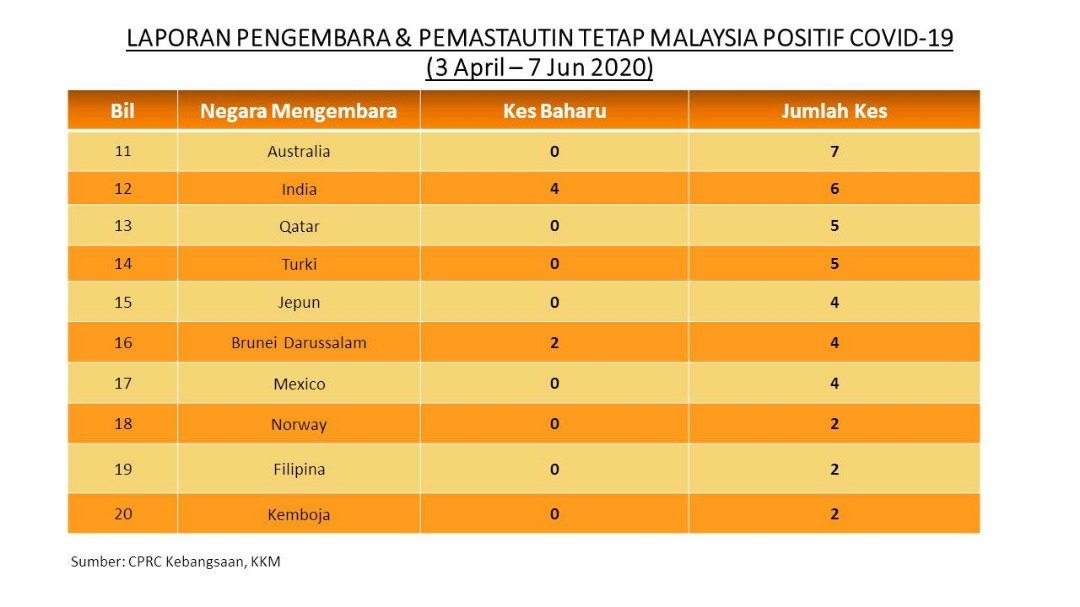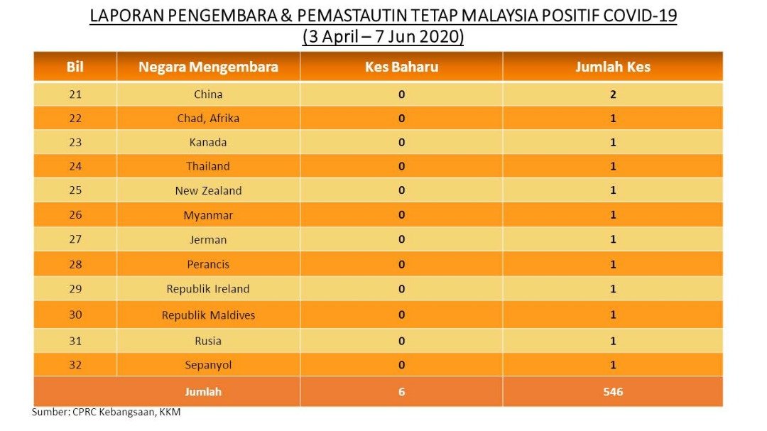Laporan Pengembara & Pemastautin Tetap Malaysia Positif COVID-19 07/06/2020 Asrul Siaran Media 07 Jun 2020 Jumlah paparan: 730 Rating: ( 0 Rating ) Sila beri kadar Undi 1 Undi 2 Undi 3 Undi 4 Undi 5 Facebook Twitter Seterusnya Seterusnya