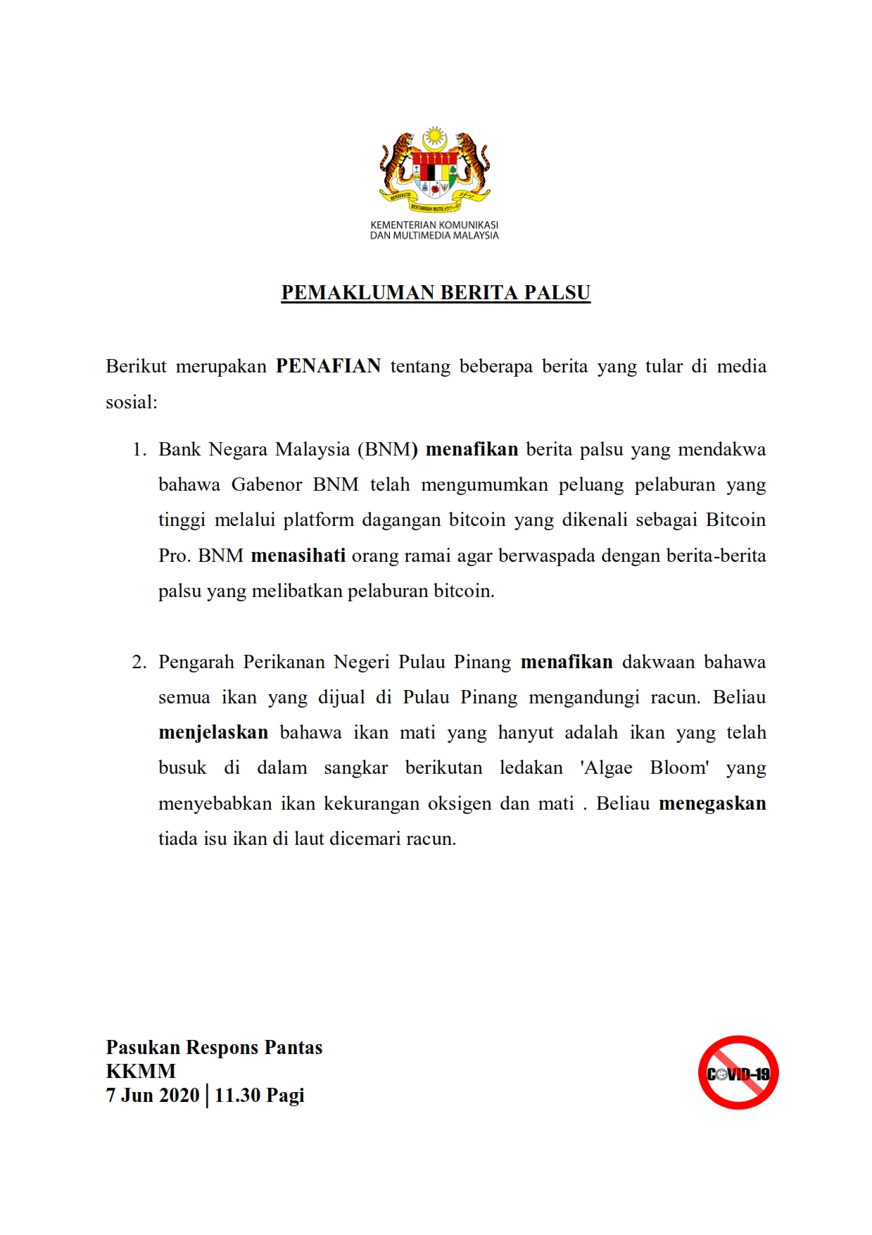 Pemakluman Berita Palsu SKMM 07/06/2020 1130 AM Aiman Siaran Media 07 Jun 2020 Jumlah paparan: 757 Rating: ( 0 Rating ) Sila beri kadar Undi 1 Undi 2 Undi 3 Undi 4 Undi 5 Lihat / Muat Turun PDF Facebook Twitter Seterusnya Seterusnya