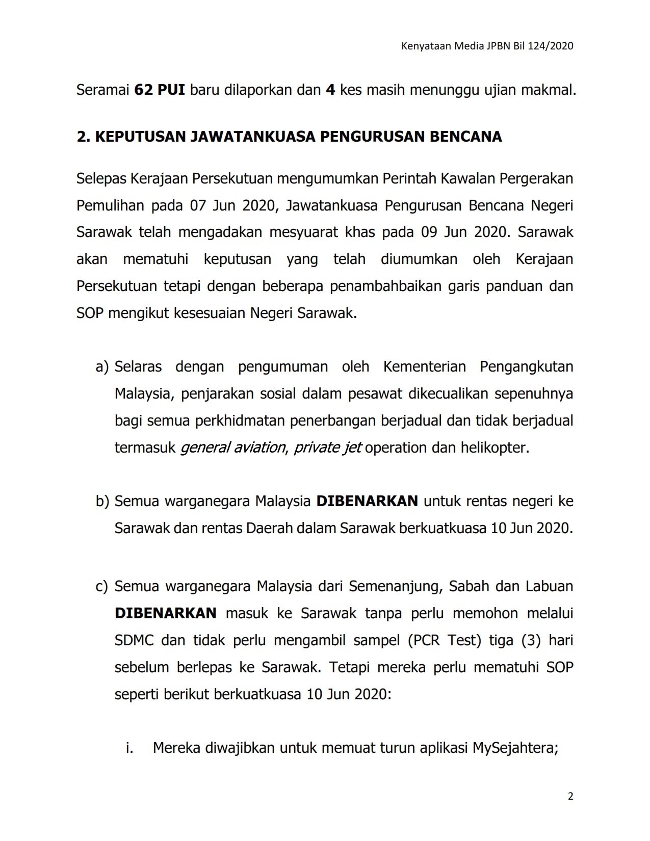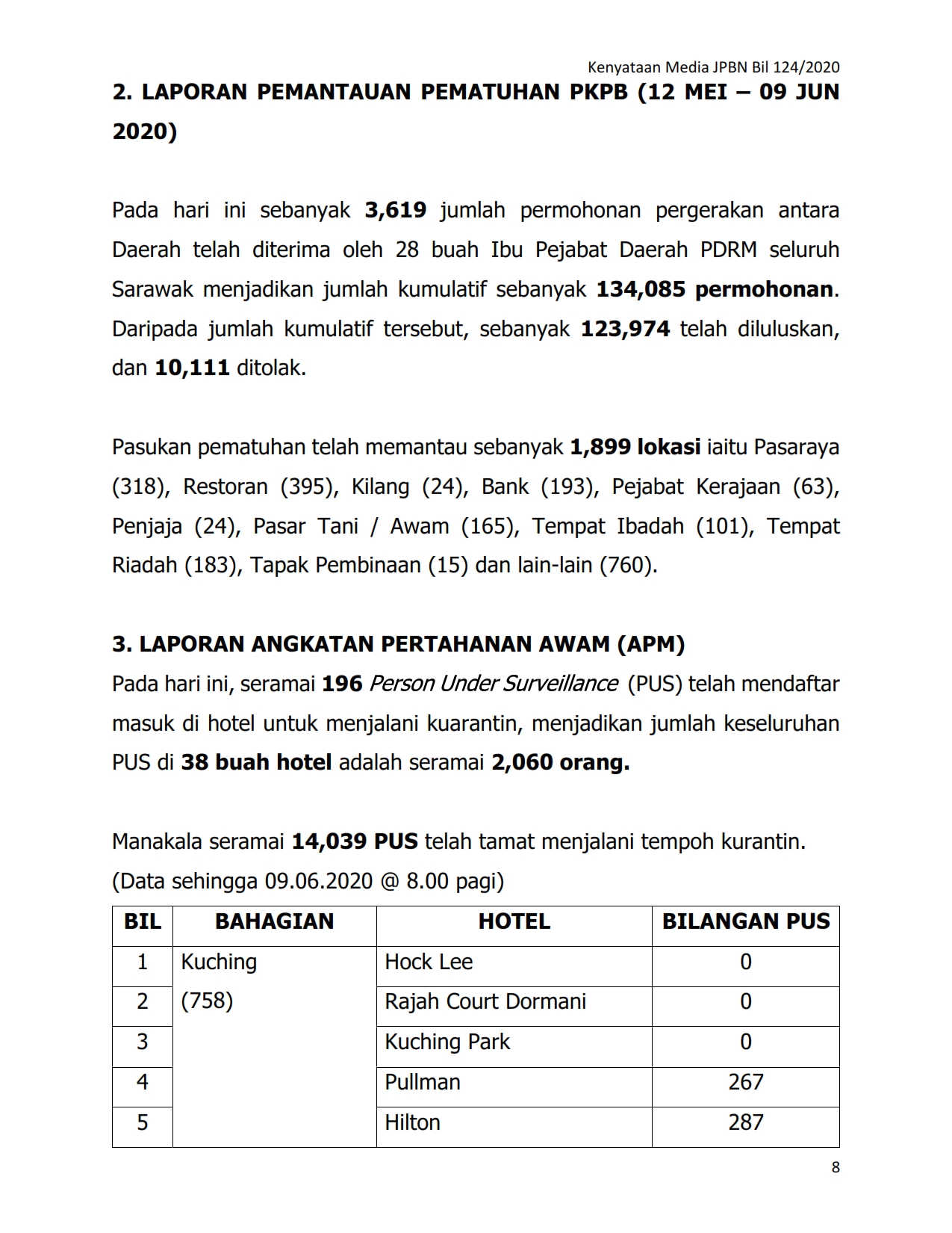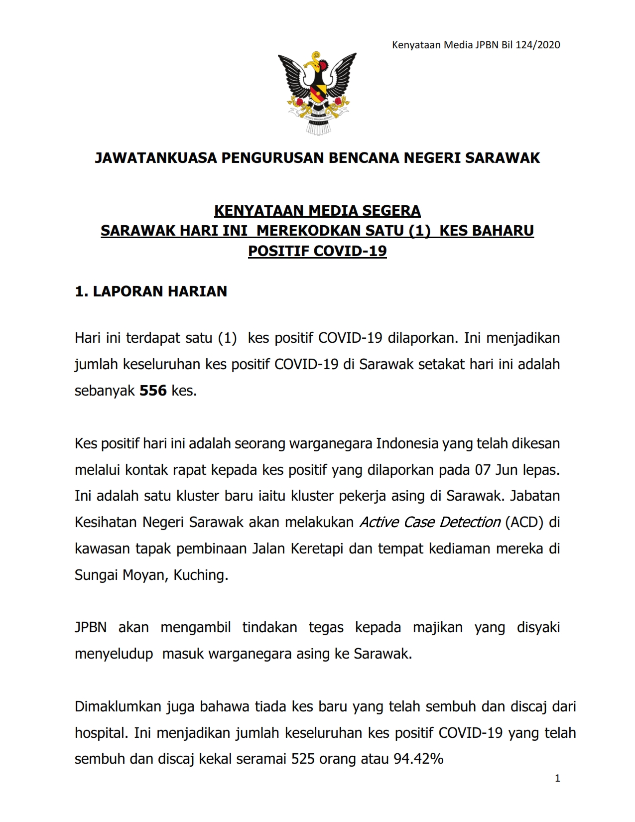 Kenyataan Media Jawatankuasa Pengurusan Bencana Negeri Sarawak 09/06/2020 0500 PM Aiman Siaran Media 09 Jun 2020 Jumlah paparan: 1991 Rating: ( 0 Rating ) Sila beri kadar Undi 1 Undi 2 Undi 3 Undi 4 Undi 5 Lihat / Muat Turun PDF Facebook Twitter Seterusnya Seterusnya