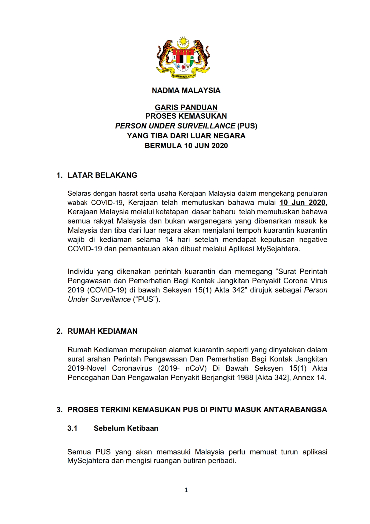 NADMA: Garis Panduan Proses Kemasukan PUS Yang Tiba Dari Luar Negara Bermula 10 Jun 2020 Aiman Siaran Media 10 Jun 2020 Jumlah paparan: 1542 Rating: ( 0 Rating ) Sila beri kadar Undi 1 Undi 2 Undi 3 Undi 4 Undi 5 Lihat / Muat Turun PDF Facebook Twitter Seterusnya Seterusnya