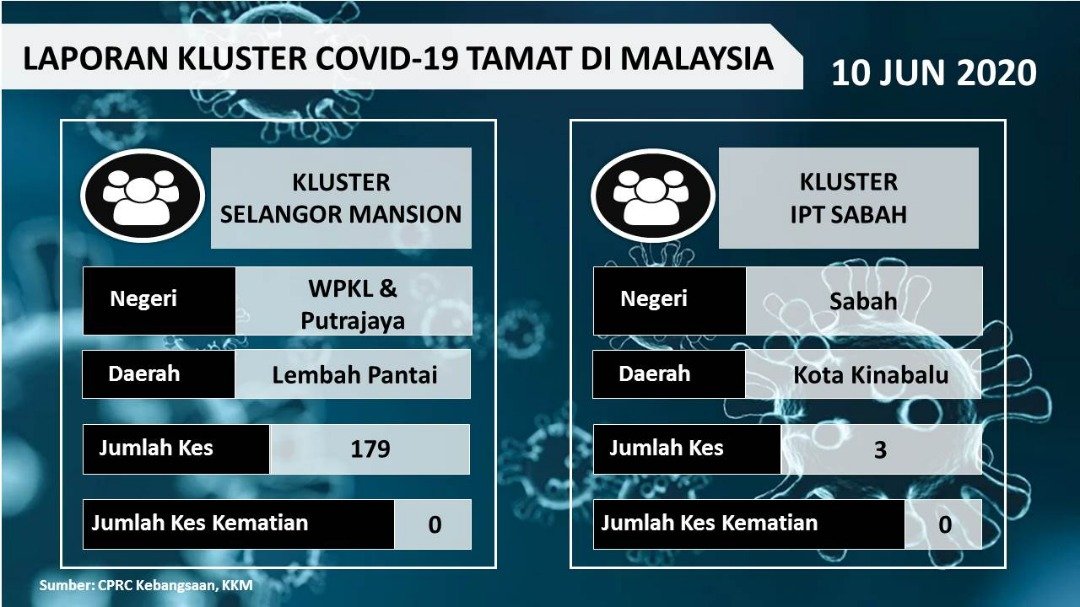 Laporan Kluster COVID-19 Tamat Di Malaysia 10/06/2020 Aiman Siaran Media 10 Jun 2020 Jumlah paparan: 766 Rating: ( 0 Rating ) Sila beri kadar Undi 1 Undi 2 Undi 3 Undi 4 Undi 5 Lihat / Muat Turun JPG Facebook Twitter Seterusnya Seterusnya