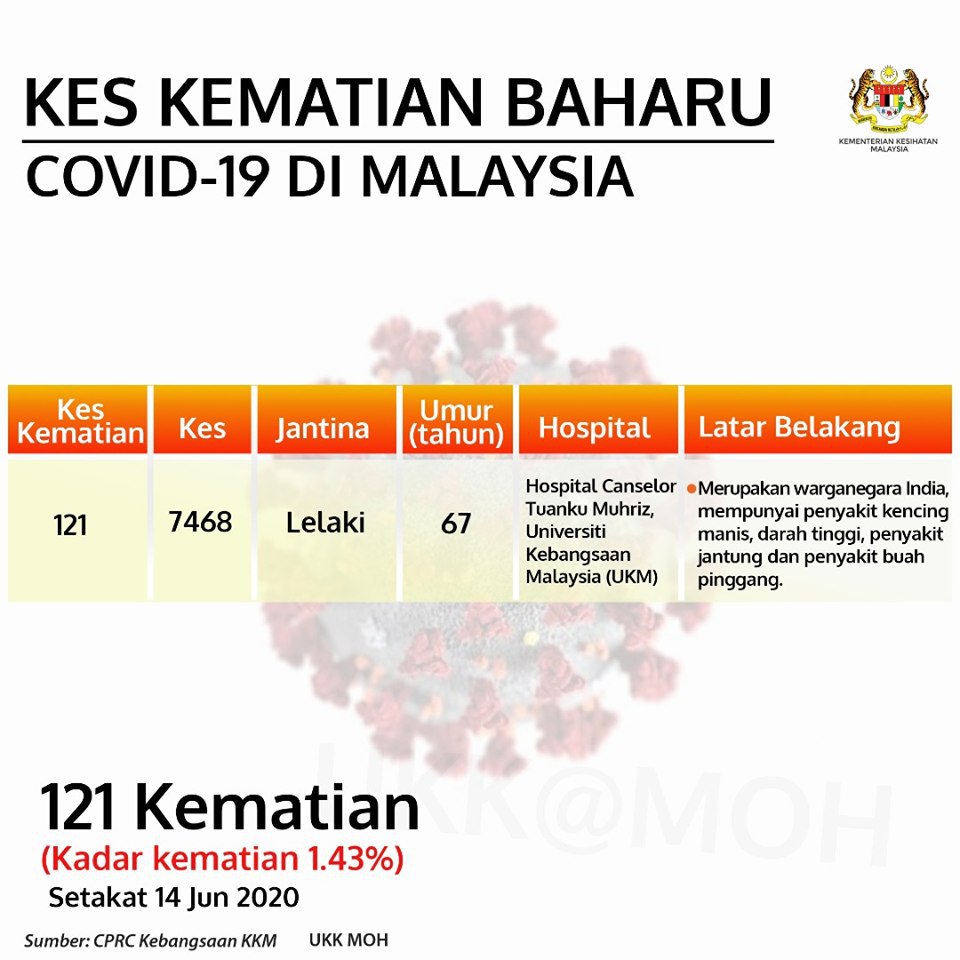 Kes Kematian Baharu COVID-19 Di Malaysia 14/06/2020 Aiman Siaran Media 14 Jun 2020 Jumlah paparan: 773 Rating: ( 0 Rating ) Sila beri kadar Undi 1 Undi 2 Undi 3 Undi 4 Undi 5 /bencana2/images/ndcc/documents/covid19/siaranmedia202006/SIARAN_MEDIA_20200615_13.jpg Facebook Twitter Seterusnya Seterusnya