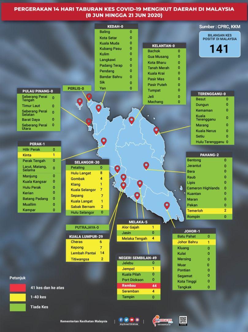 Pergerakan 14 Hari Taburan Kes COVID-19 Mengikut Daerah Di Malaysia 21/06/2020 Asrul Siaran Media 21 Jun 2020 Jumlah paparan: 665 Rating: ( 0 Rating ) Sila beri kadar Undi 1 Undi 2 Undi 3 Undi 4 Undi 5 Facebook Twitter Seterusnya Seterusnya
