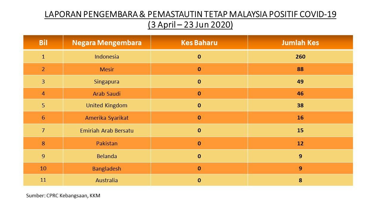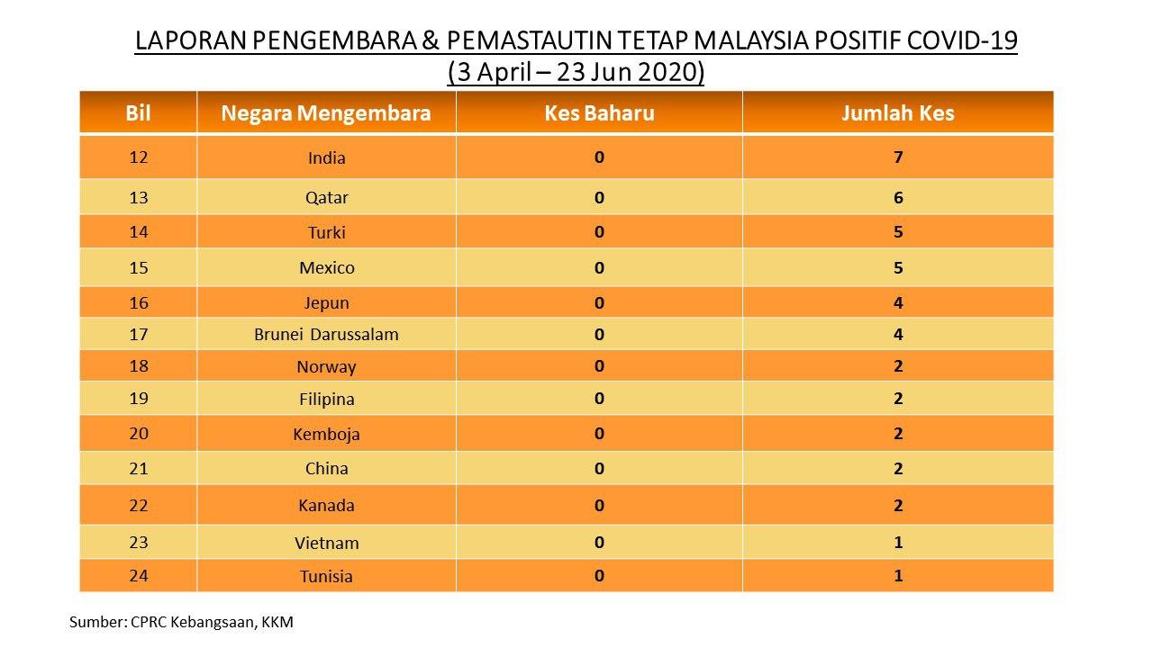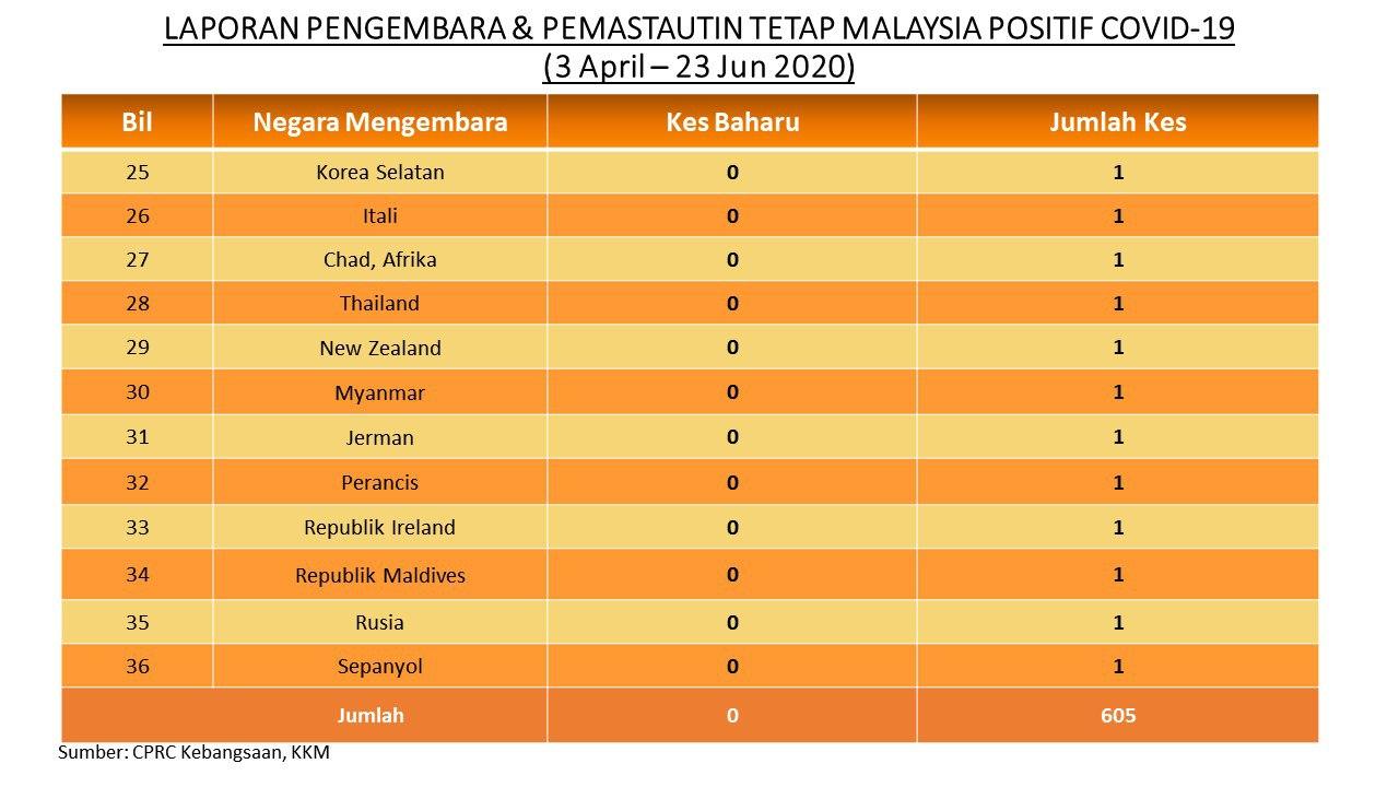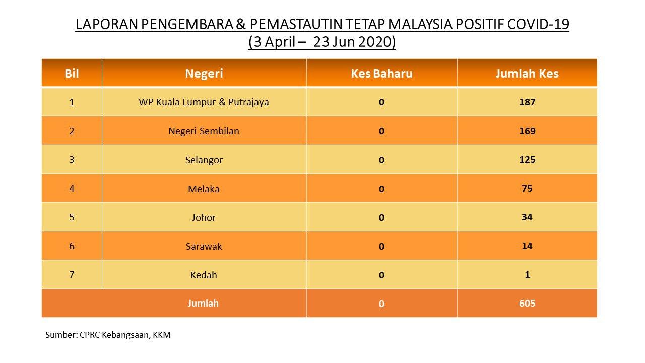 Laporan Pengembara & Pemastautin Tetap Malaysia Positif COVID-19 23/06/2020 Asrul Siaran Media 23 Jun 2020 Jumlah paparan: 650 Rating: ( 0 Rating ) Sila beri kadar Undi 1 Undi 2 Undi 3 Undi 4 Undi 5 Facebook Twitter Seterusnya Seterusnya