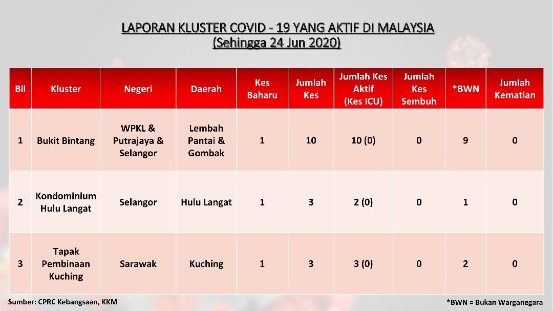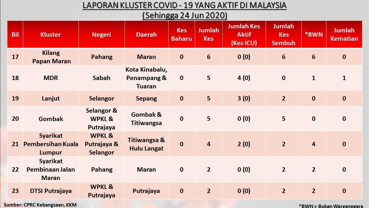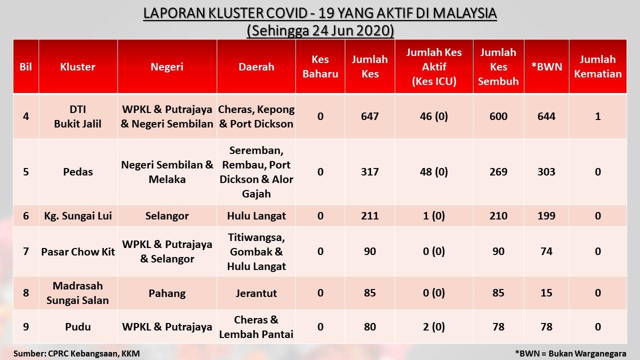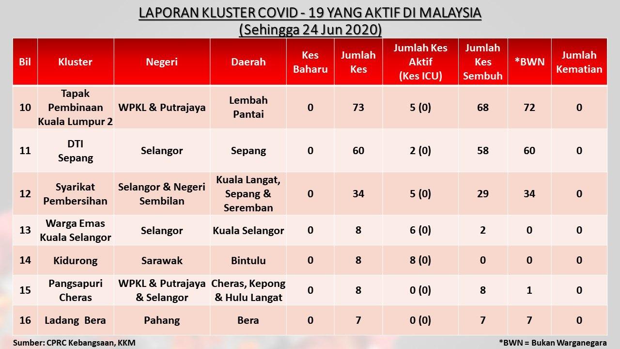 Laporan Kluster COVID-19 Aktif Di Malaysia 24/06/2020 Asrul Siaran Media 24 Jun 2020 Jumlah paparan: 740 Rating: ( 0 Rating ) Sila beri kadar Undi 1 Undi 2 Undi 3 Undi 4 Undi 5 Facebook Twitter Seterusnya Seterusnya