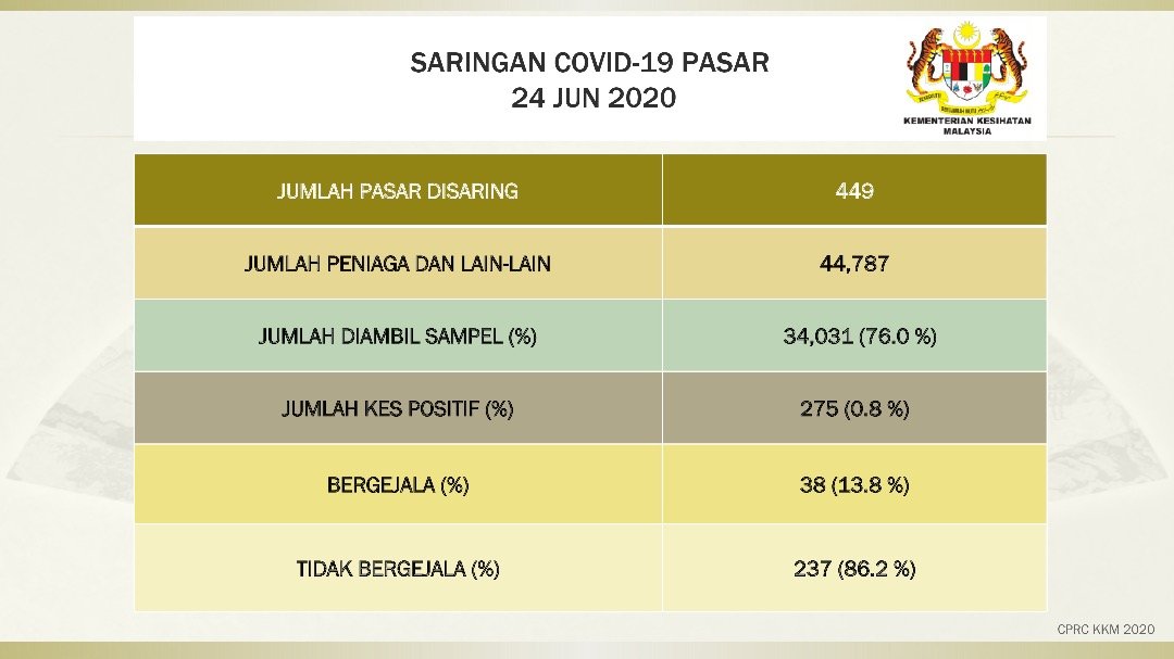 Laporan Saringan COVID-19 Di Madrasah/Tahfiz , Pasar & Pusat Jagaan Warga Emas 24/06/2020 Asrul Siaran Media 24 Jun 2020 Jumlah paparan: 537 Rating: ( 0 Rating ) Sila beri kadar Undi 1 Undi 2 Undi 3 Undi 4 Undi 5 Facebook Twitter Seterusnya Seterusnya