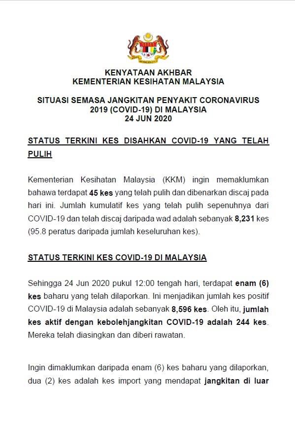 Kenyataan Media KP KKM 24/06/2020 0500 PM Asrul Siaran Media 24 Jun 2020 Jumlah paparan: 776 Rating: ( 0 Rating ) Sila beri kadar Undi 1 Undi 2 Undi 3 Undi 4 Undi 5 Facebook Twitter Seterusnya Seterusnya
