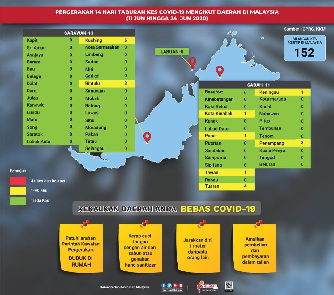 Pergerakan 14 Hari Taburan Kes COVID-19 Mengikut Daerah Di Malaysia 24/06/2020 Asrul Siaran Media 24 Jun 2020 Jumlah paparan: 719 Rating: ( 0 Rating ) Sila beri kadar Undi 1 Undi 2 Undi 3 Undi 4 Undi 5 Facebook Twitter Seterusnya Seterusnya