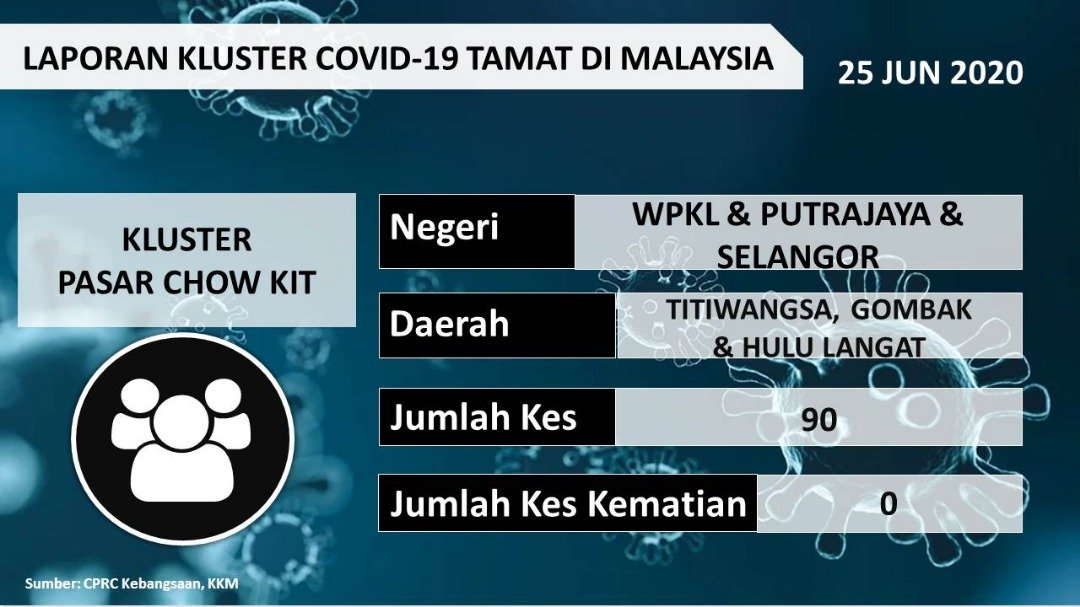 Laporan Kluster COVID-19 Tamat Di Malaysia 25/06/2020 Asrul Siaran Media 25 Jun 2020 Jumlah paparan: 933 Rating: ( 0 Rating ) Sila beri kadar Undi 1 Undi 2 Undi 3 Undi 4 Undi 5 Facebook Twitter Seterusnya Seterusnya
