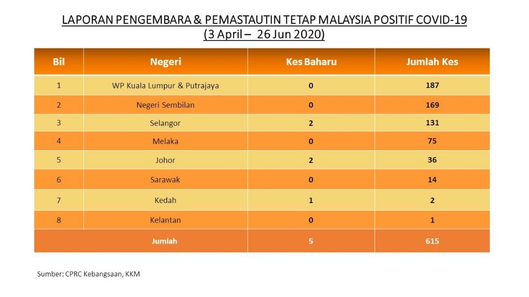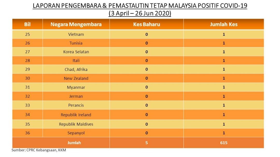 Laporan Pengembara & Pemastautin Tetap Malaysia Positif COVID-19 26/06/2020 Aiman Siaran Media 26 Jun 2020 Jumlah paparan: 764 Rating: ( 0 Rating ) Sila beri kadar Undi 1 Undi 2 Undi 3 Undi 4 Undi 5 Facebook Twitter Seterusnya Seterusnya