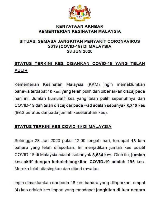 Kenyataan Media KP KKM 28/06/2020 0500 PM Asrul Siaran Media 28 Jun 2020 Jumlah paparan: 687 Rating: ( 0 Rating ) Sila beri kadar Undi 1 Undi 2 Undi 3 Undi 4 Undi 5 Facebook Twitter Seterusnya Seterusnya