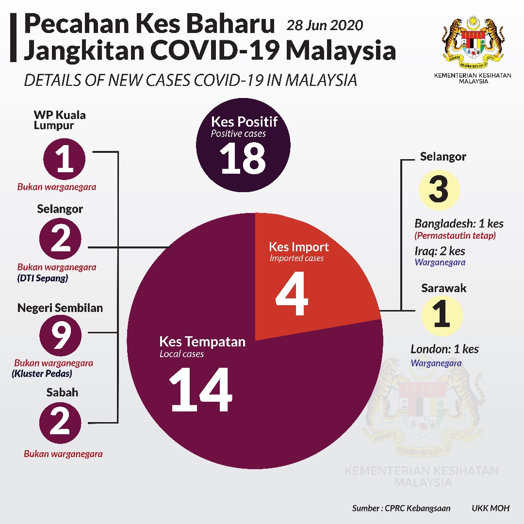 Statistik Pecahan Kes Baharu Jangkitan COVID-19 Malaysia 28/06/2020 Asrul Siaran Media 28 Jun 2020 Jumlah paparan: 682 Rating: ( 0 Rating ) Sila beri kadar Undi 1 Undi 2 Undi 3 Undi 4 Undi 5 Facebook Twitter Seterusnya Seterusnya