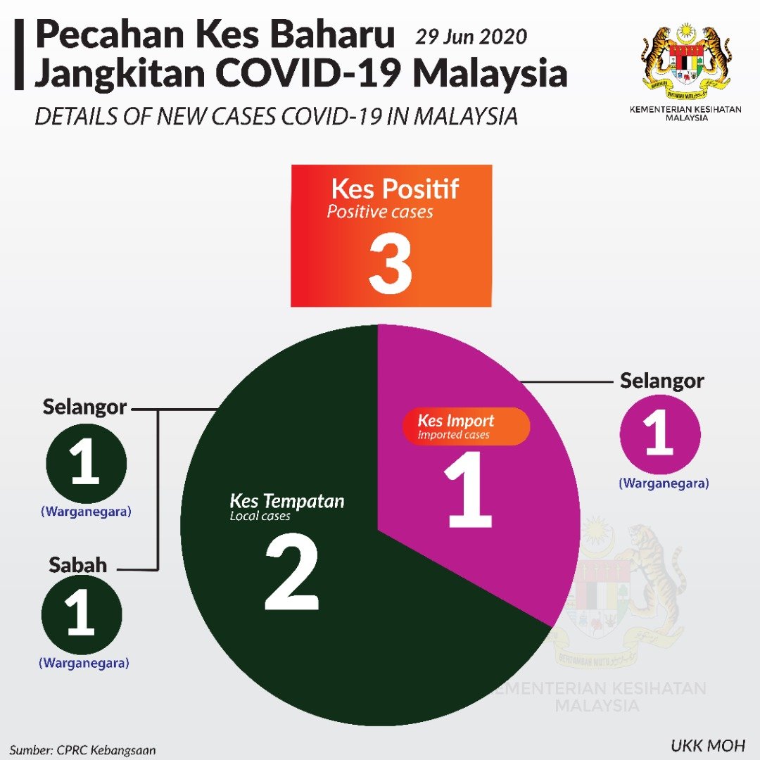 Statistik Pecahan Kes Baharu Jangkitan COVID-19 Malaysia 29/06/2020 Asrul Siaran Media 29 Jun 2020 Jumlah paparan: 1161 Rating: ( 0 Rating ) Sila beri kadar Undi 1 Undi 2 Undi 3 Undi 4 Undi 5 Facebook Twitter Seterusnya Seterusnya