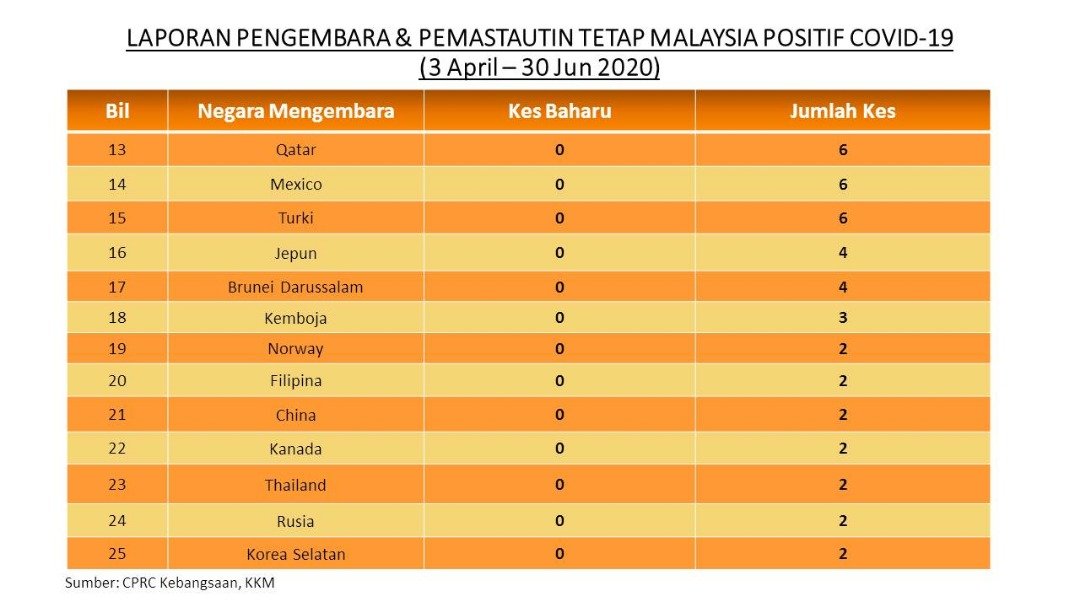 Laporan Pengembara & Pemastautin Tetap Malaysia Positif COVID-19 30/06/2020 Asrul Siaran Media 30 Jun 2020 Jumlah paparan: 1030 Rating: ( 0 Rating ) Sila beri kadar Undi 1 Undi 2 Undi 3 Undi 4 Undi 5 Facebook Twitter Seterusnya Seterusnya