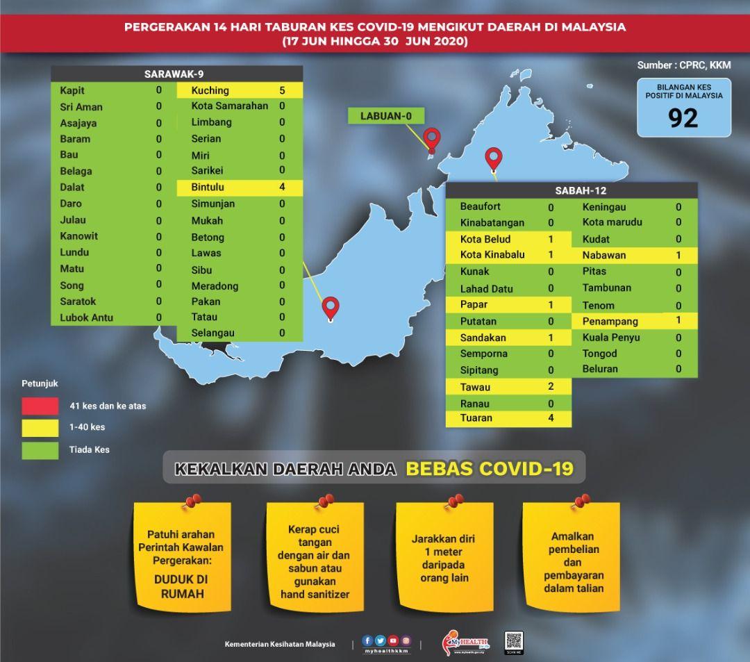 Pergerakan 14 Hari Taburan Kes COVID-19 Mengikut Daerah Di Malaysia 30/06/2020 Asrul Siaran Media 30 Jun 2020 Jumlah paparan: 867 Rating: ( 0 Rating ) Sila beri kadar Undi 1 Undi 2 Undi 3 Undi 4 Undi 5 Facebook Twitter Seterusnya Seterusnya