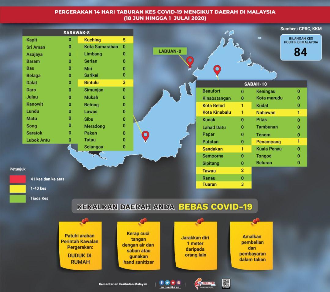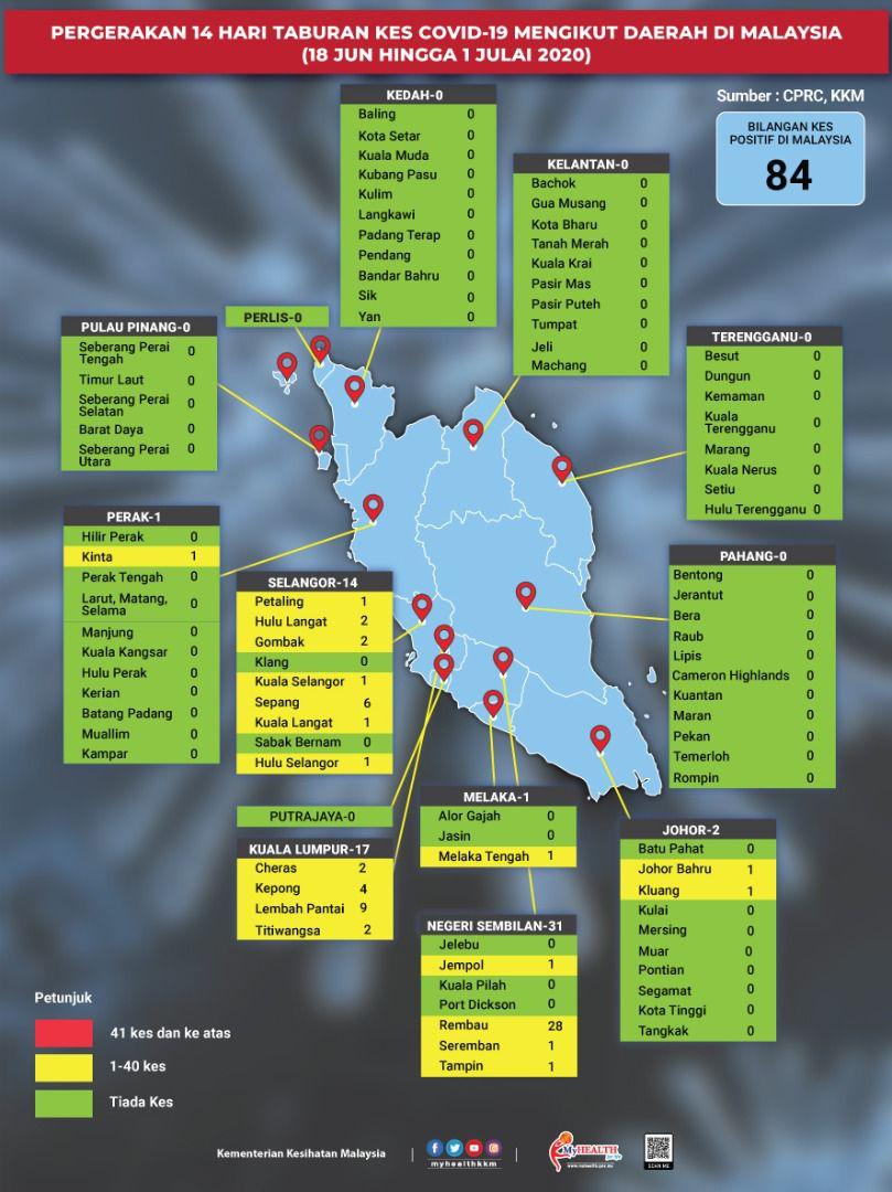 Pergerakan 14 Hari Taburan Kes COVID-19 Mengikut Daerah Di Malaysia 01/07/2020 Asrul Siaran Media 01 Julai 2020 Jumlah paparan: 734 Rating: ( 0 Rating ) Sila beri kadar Undi 1 Undi 2 Undi 3 Undi 4 Undi 5 Facebook Twitter Seterusnya Seterusnya