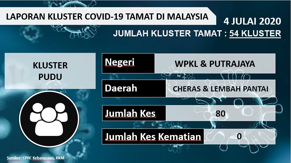 Laporan Kluster COVID-19 Tamat Di Malaysia 04/07/2020 Asrul Siaran Media 04 Julai 2020 Jumlah paparan: 503 Rating: ( 0 Rating ) Sila beri kadar Undi 1 Undi 2 Undi 3 Undi 4 Undi 5 Facebook Twitter Seterusnya Seterusnya