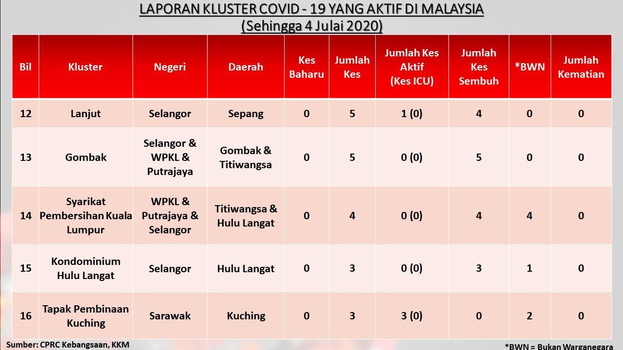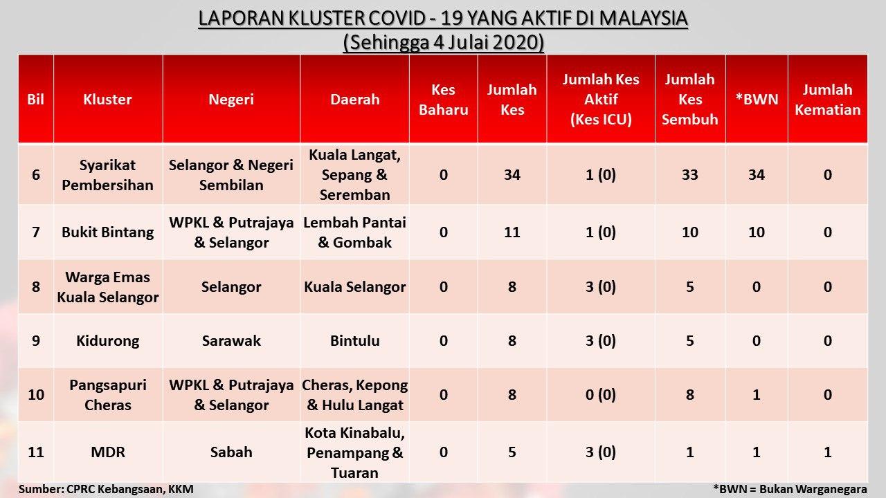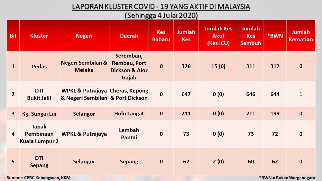 Laporan Kluster COVID-19 Aktif Di Malaysia 04/07/2020 Asrul Siaran Media 04 Julai 2020 Jumlah paparan: 783 Rating: ( 0 Rating ) Sila beri kadar Undi 1 Undi 2 Undi 3 Undi 4 Undi 5 Facebook Twitter Seterusnya Seterusnya