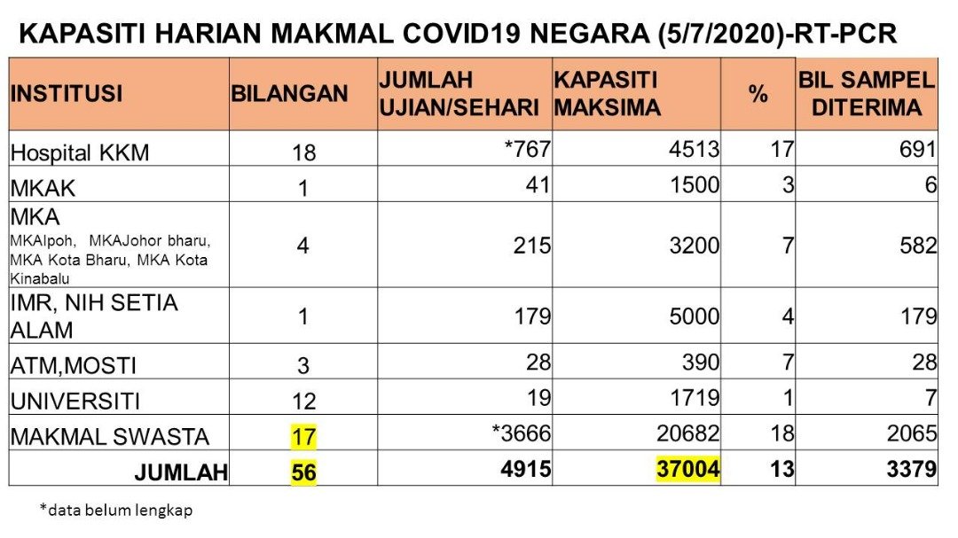 Kapasiti Harian Makmal COVID-19 Negara 05/07/2020 Asrul Siaran Media 05 Julai 2020 Jumlah paparan: 918 Rating: ( 0 Rating ) Sila beri kadar Undi 1 Undi 2 Undi 3 Undi 4 Undi 5 Facebook Twitter Seterusnya Seterusnya