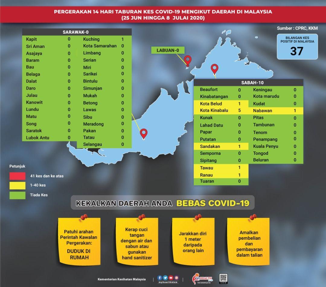 Pergerakan 14 Hari Taburan Kes COVID-19 Mengikut Daerah Di Malaysia 08/07/2020 Aiman Siaran Media 08 Julai 2020 Jumlah paparan: 777 Rating: ( 0 Rating ) Sila beri kadar Undi 1 Undi 2 Undi 3 Undi 4 Undi 5 Facebook Twitter Seterusnya Seterusnya