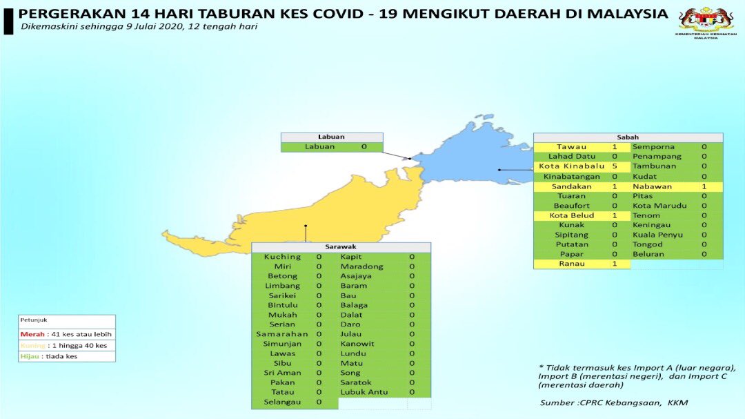 Pergerakan 14 Hari Taburan Kes COVID-19 Mengikut Daerah Di Malaysia 09/07/2020 Aiman Siaran Media 09 Julai 2020 Jumlah paparan: 849 Rating: ( 0 Rating ) Sila beri kadar Undi 1 Undi 2 Undi 3 Undi 4 Undi 5 Facebook Twitter Seterusnya Seterusnya