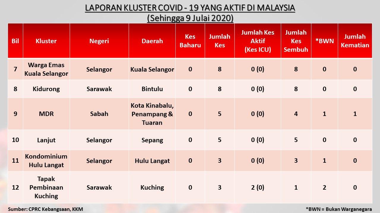 Laporan Kluster COVID-19 Aktif Di Malaysia 09/07/2020 Asrul Siaran Media 09 Julai 2020 Jumlah paparan: 904 Rating: ( 0 Rating ) Sila beri kadar Undi 1 Undi 2 Undi 3 Undi 4 Undi 5 Facebook Twitter Seterusnya Seterusnya