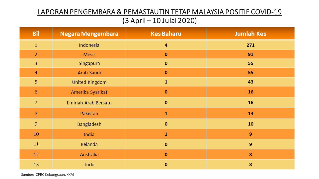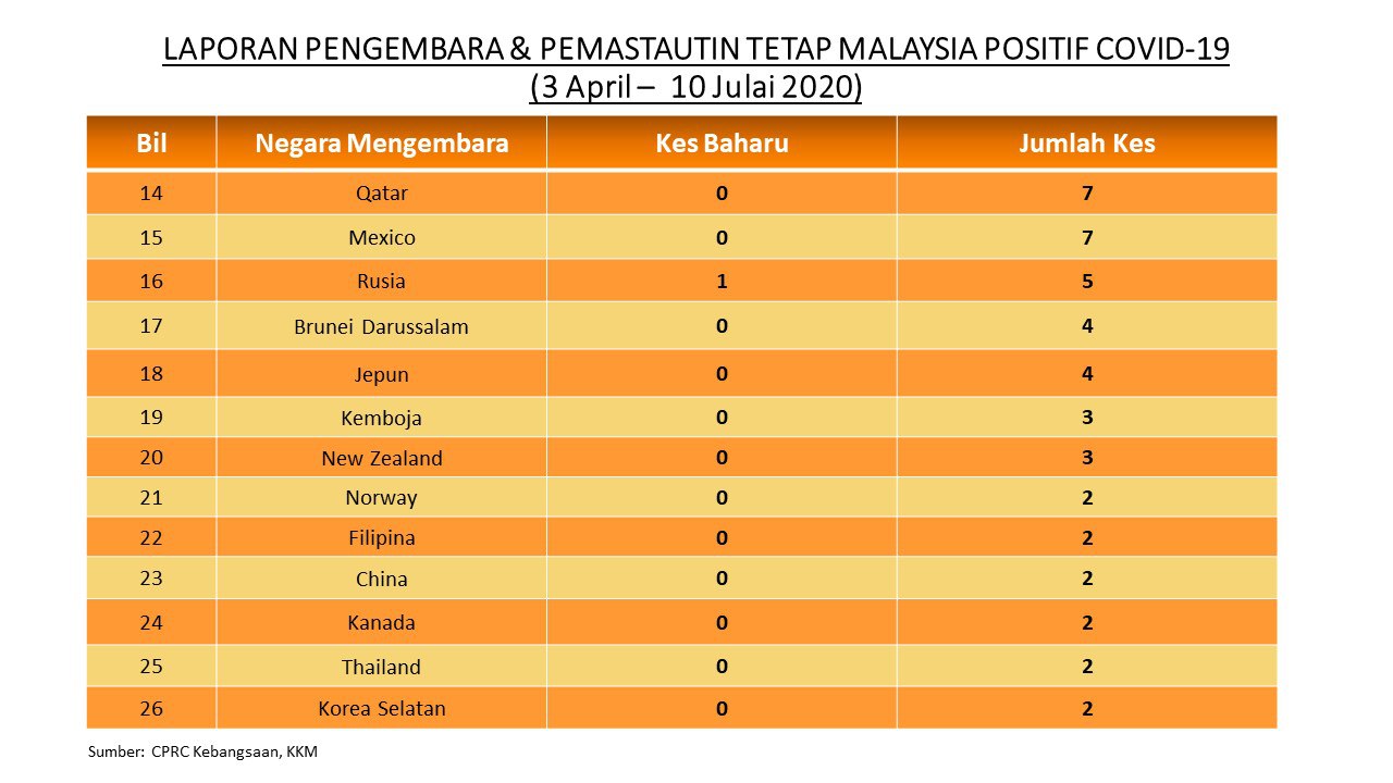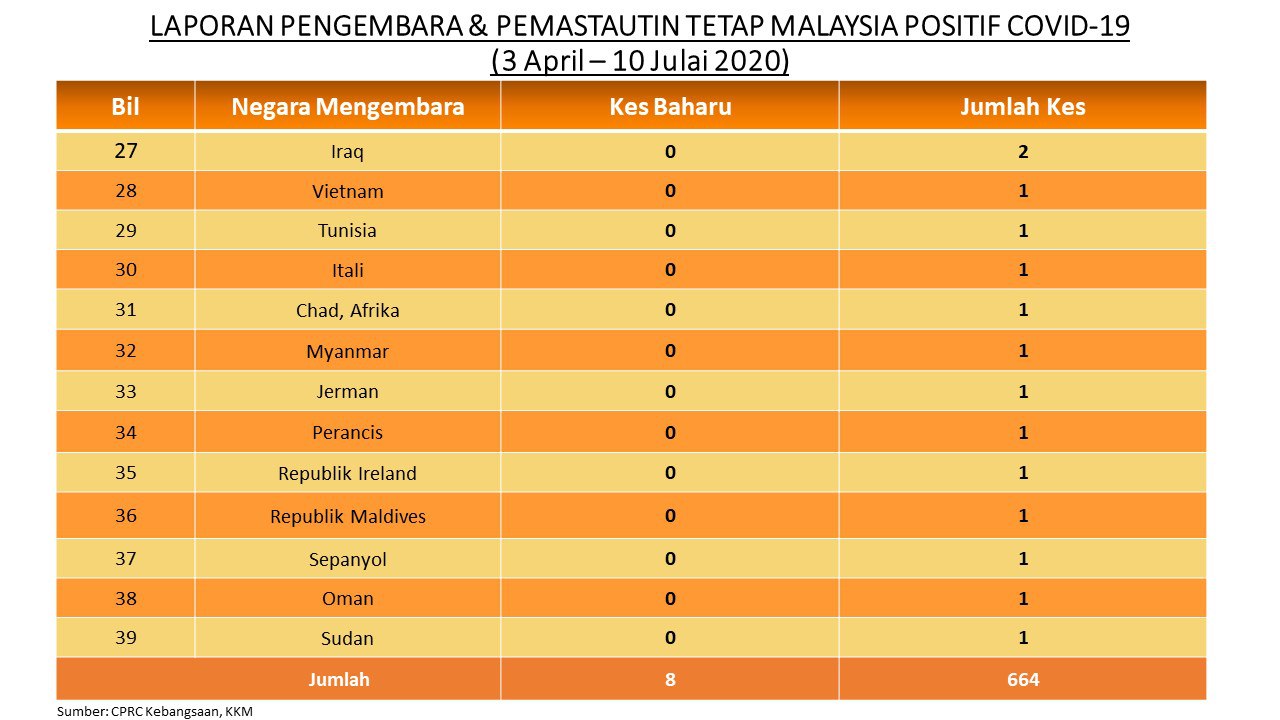 Laporan Pengembara & Pemastautin Tetap Malaysia Positif COVID-19 10/07/2020 Aiman Siaran Media 10 Julai 2020 Jumlah paparan: 588 Rating: ( 0 Rating ) Sila beri kadar Undi 1 Undi 2 Undi 3 Undi 4 Undi 5 Facebook Twitter Seterusnya Seterusnya