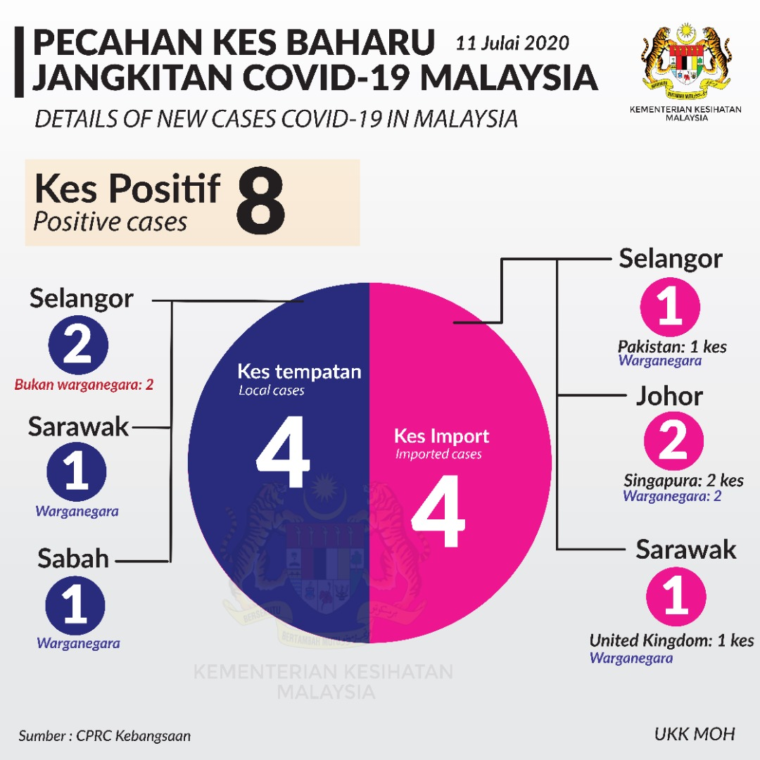 Statistik Pecahan Kes Baharu Jangkitan COVID-19 Malaysia 11/07/2020 Asrul Siaran Media 11 Julai 2020 Jumlah paparan: 916 Rating: ( 0 Rating ) Sila beri kadar Undi 1 Undi 2 Undi 3 Undi 4 Undi 5 Facebook Twitter Seterusnya Seterusnya