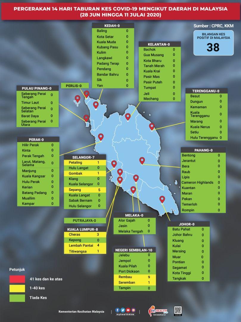 Pergerakan 14 Hari Taburan Kes COVID-19 Mengikut Daerah Di Malaysia 11/07/2020 Asrul Siaran Media 11 Julai 2020 Jumlah paparan: 1051 Rating: ( 0 Rating ) Sila beri kadar Undi 1 Undi 2 Undi 3 Undi 4 Undi 5 Facebook Twitter Seterusnya Seterusnya