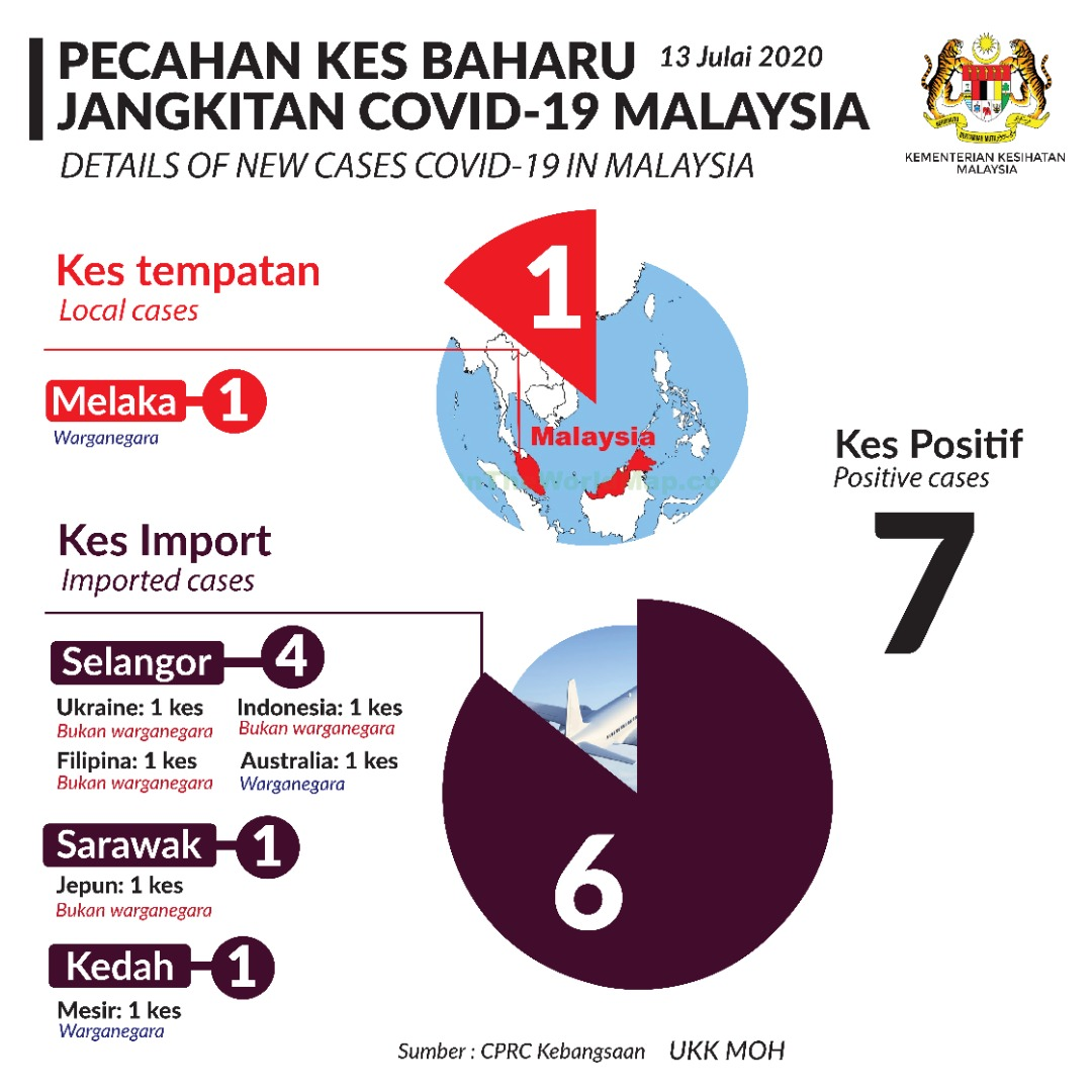 Statistik Pecahan Kes Baharu Jangkitan COVID-19 Malaysia 13/07/2020 Asrul Siaran Media 13 Julai 2020 Jumlah paparan: 1014 Rating: ( 0 Rating ) Sila beri kadar Undi 1 Undi 2 Undi 3 Undi 4 Undi 5 Facebook Twitter Seterusnya Seterusnya
