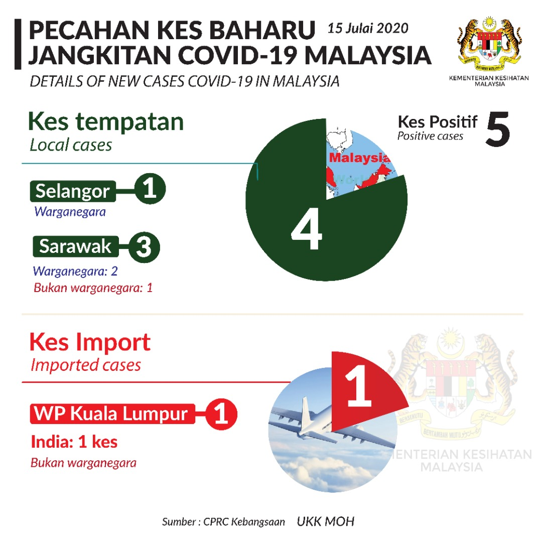Statistik Pecahan Kes Baharu Jangkitan COVID-19 Malaysia 15/07/2020 Asrul Siaran Media 15 Julai 2020 Jumlah paparan: 737 Rating: ( 0 Rating ) Sila beri kadar Undi 1 Undi 2 Undi 3 Undi 4 Undi 5 Facebook Twitter Seterusnya Seterusnya