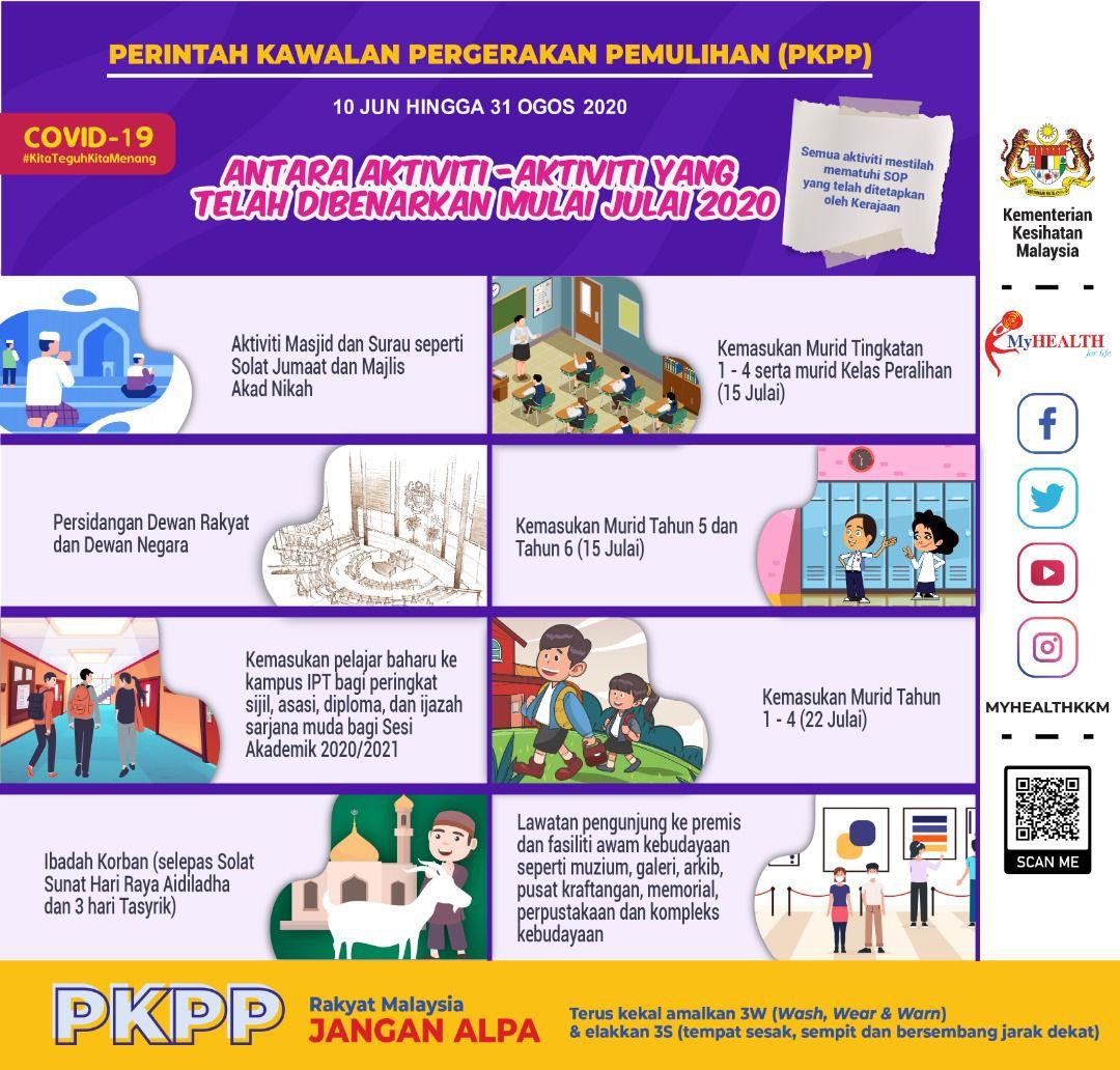 PKPP - Antara Aktiviti Yang Dibenarkan Mulai Julai 2020 Asrul Nasihat 16 Julai 2020 Jumlah paparan: 863 Rating: ( 1 Rating ) Kadar pengguna: 5 / 5 Sila beri kadar Undi 1 Undi 2 Undi 3 Undi 4 Undi 5 Facebook Twitter Seterusnya Seterusnya