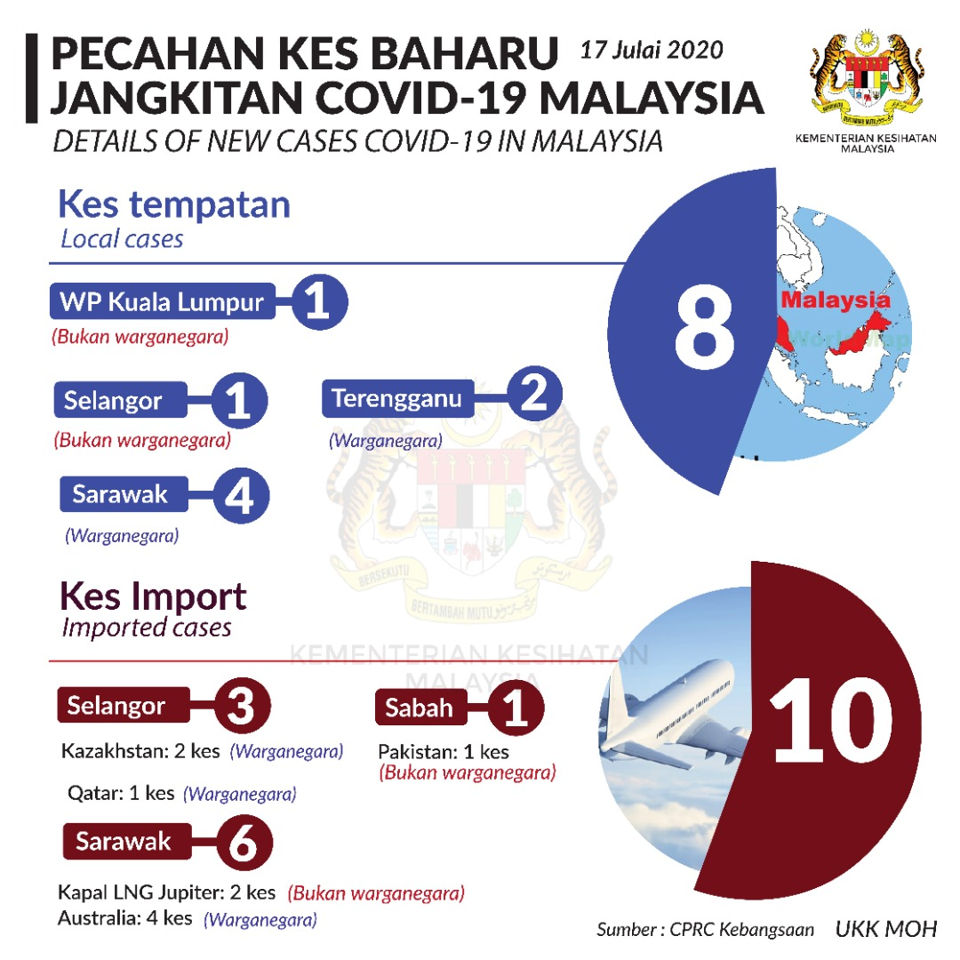 Statistik Pecahan Kes Baharu Jangkitan COVID-19 Malaysia 17/07/2020 Asrul Siaran Media 17 Julai 2020 Jumlah paparan: 874 Rating: ( 0 Rating ) Sila beri kadar Undi 1 Undi 2 Undi 3 Undi 4 Undi 5 Facebook Twitter Seterusnya Seterusnya