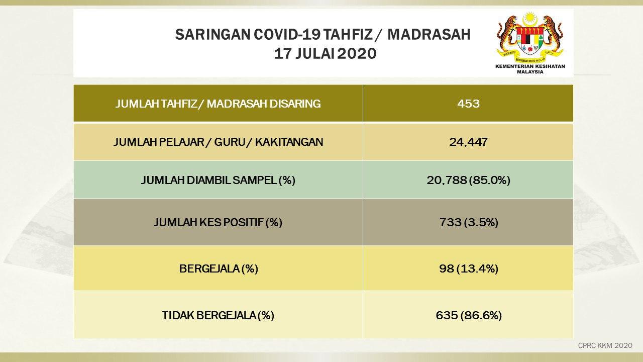 Laporan Saringan COVID-19 Di Madrasah/Tahfiz , Pasar & Pusat Jagaan Warga Emas 17/07/2020 Asrul Siaran Media 17 Julai 2020 Jumlah paparan: 781 Rating: ( 0 Rating ) Sila beri kadar Undi 1 Undi 2 Undi 3 Undi 4 Undi 5 Facebook Twitter Seterusnya Seterusnya