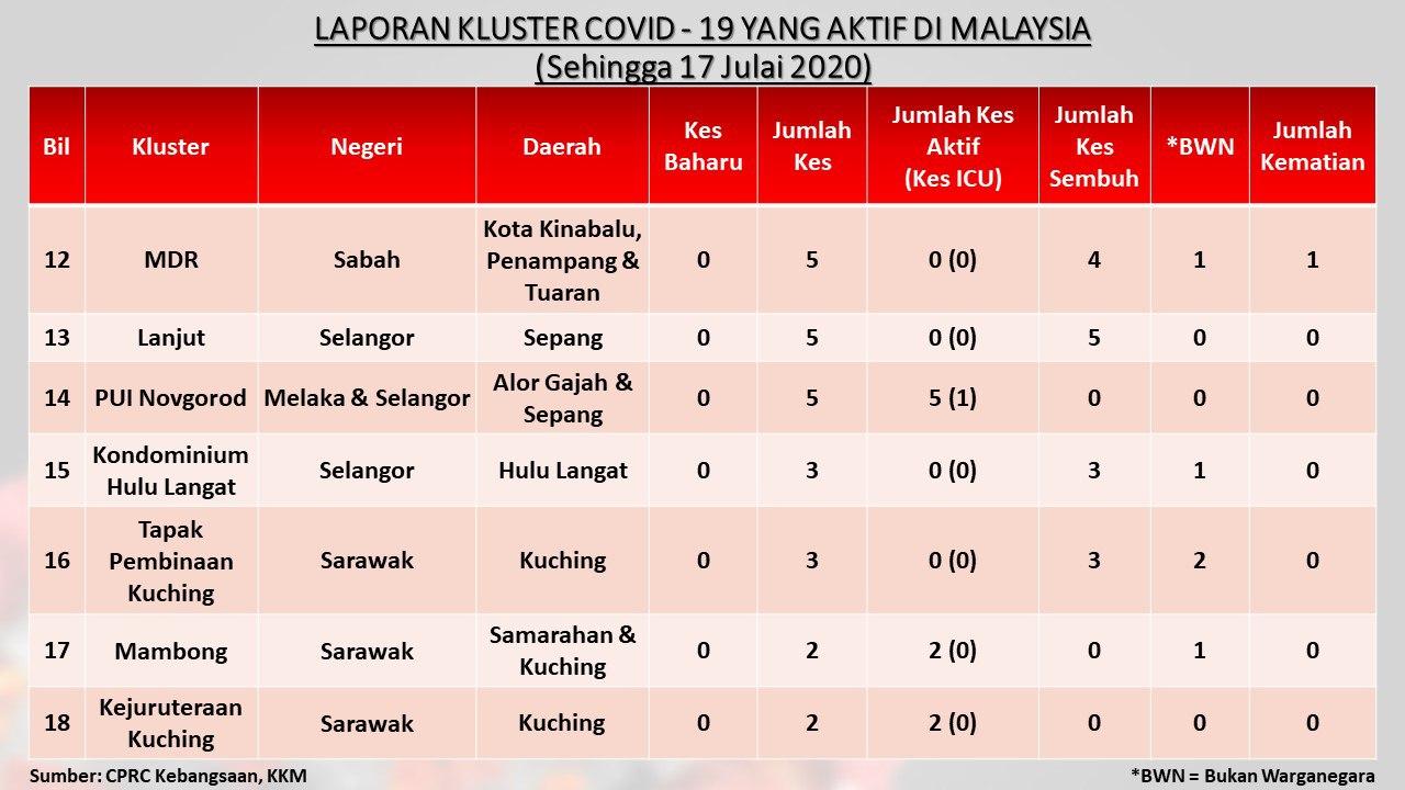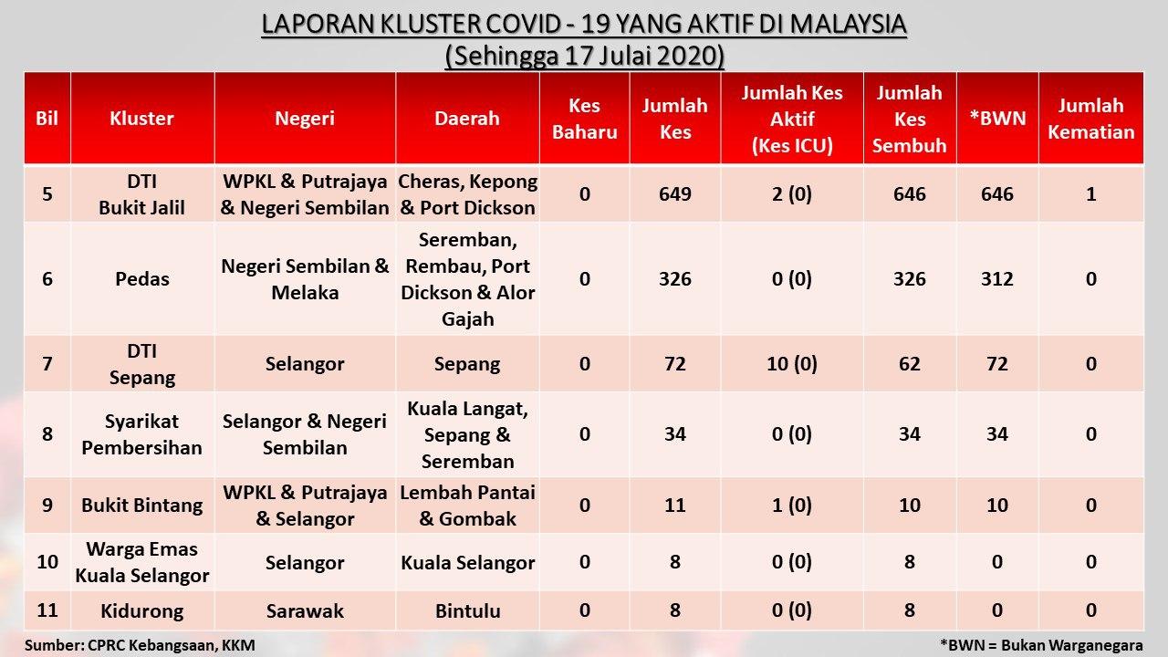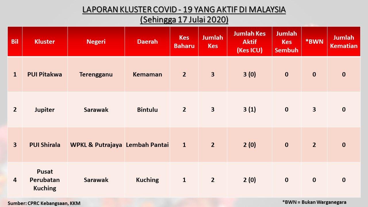 Laporan Kluster COVID-19 Aktif Di Malaysia 17/07/2020 Asrul Siaran Media 17 Julai 2020 Jumlah paparan: 527 Rating: ( 0 Rating ) Sila beri kadar Undi 1 Undi 2 Undi 3 Undi 4 Undi 5 Facebook Twitter Seterusnya Seterusnya