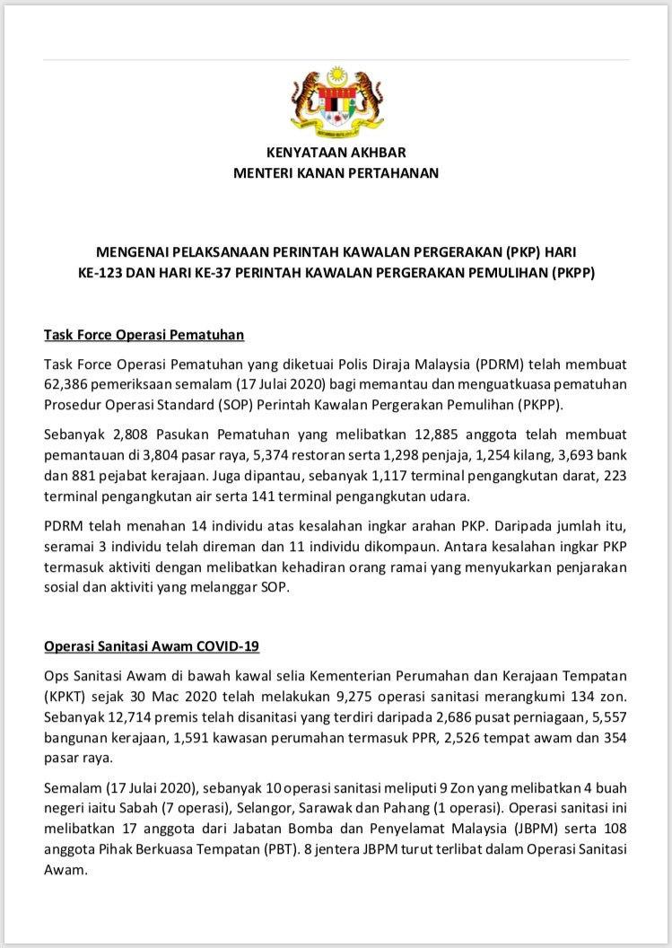 Kenyataan Akhbar Menteri Kanan Pertahanan 18/07/2020 0200 PM Asrul Siaran Media 18 Julai 2020 Jumlah paparan: 876 Rating: ( 0 Rating ) Sila beri kadar Undi 1 Undi 2 Undi 3 Undi 4 Undi 5 Facebook Twitter Seterusnya Seterusnya
