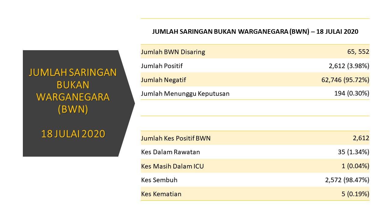 Laporan Jumlah Saringan Bukan Warganegara (BWN) 18/07/2020 Asrul Siaran Media 18 Julai 2020 Jumlah paparan: 1139 Rating: ( 0 Rating ) Sila beri kadar Undi 1 Undi 2 Undi 3 Undi 4 Undi 5 Facebook Twitter Seterusnya Seterusnya