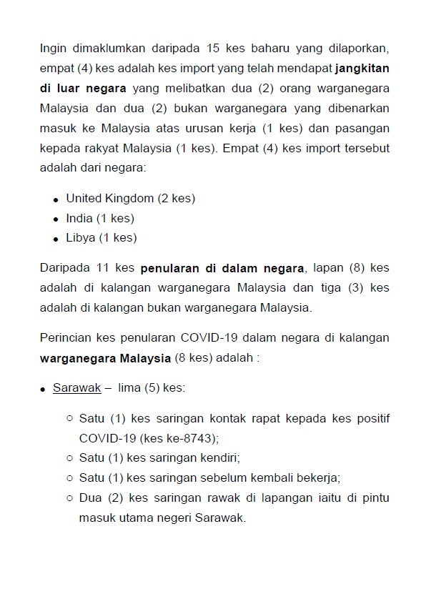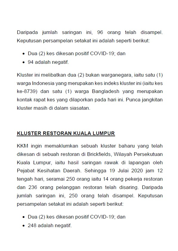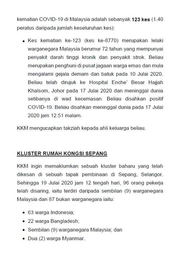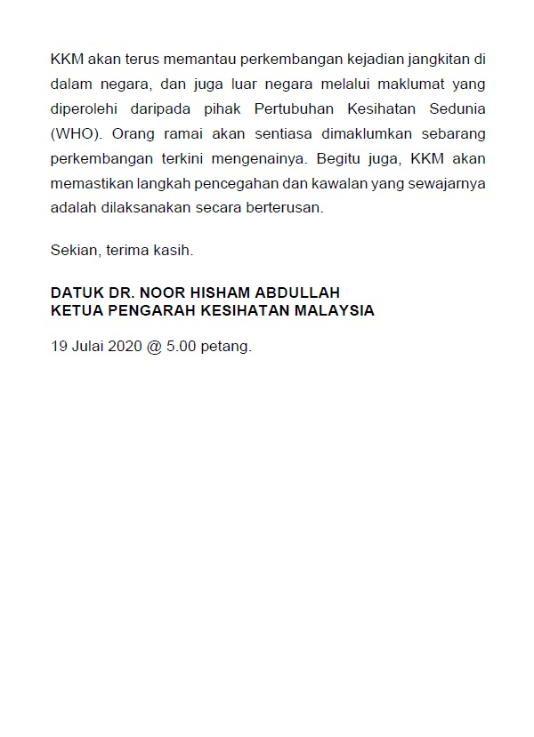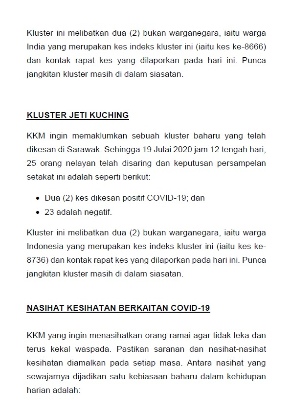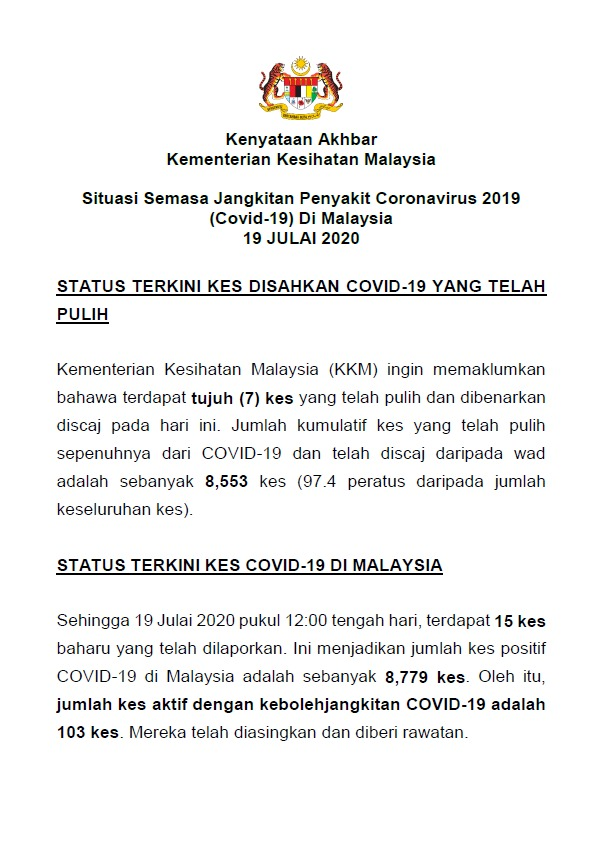 Kenyataan Media KP KKM 19/07/2020 0500 PM Asrul Siaran Media 19 Julai 2020 Jumlah paparan: 771 Rating: ( 0 Rating ) Sila beri kadar Undi 1 Undi 2 Undi 3 Undi 4 Undi 5 Facebook Twitter Seterusnya Seterusnya