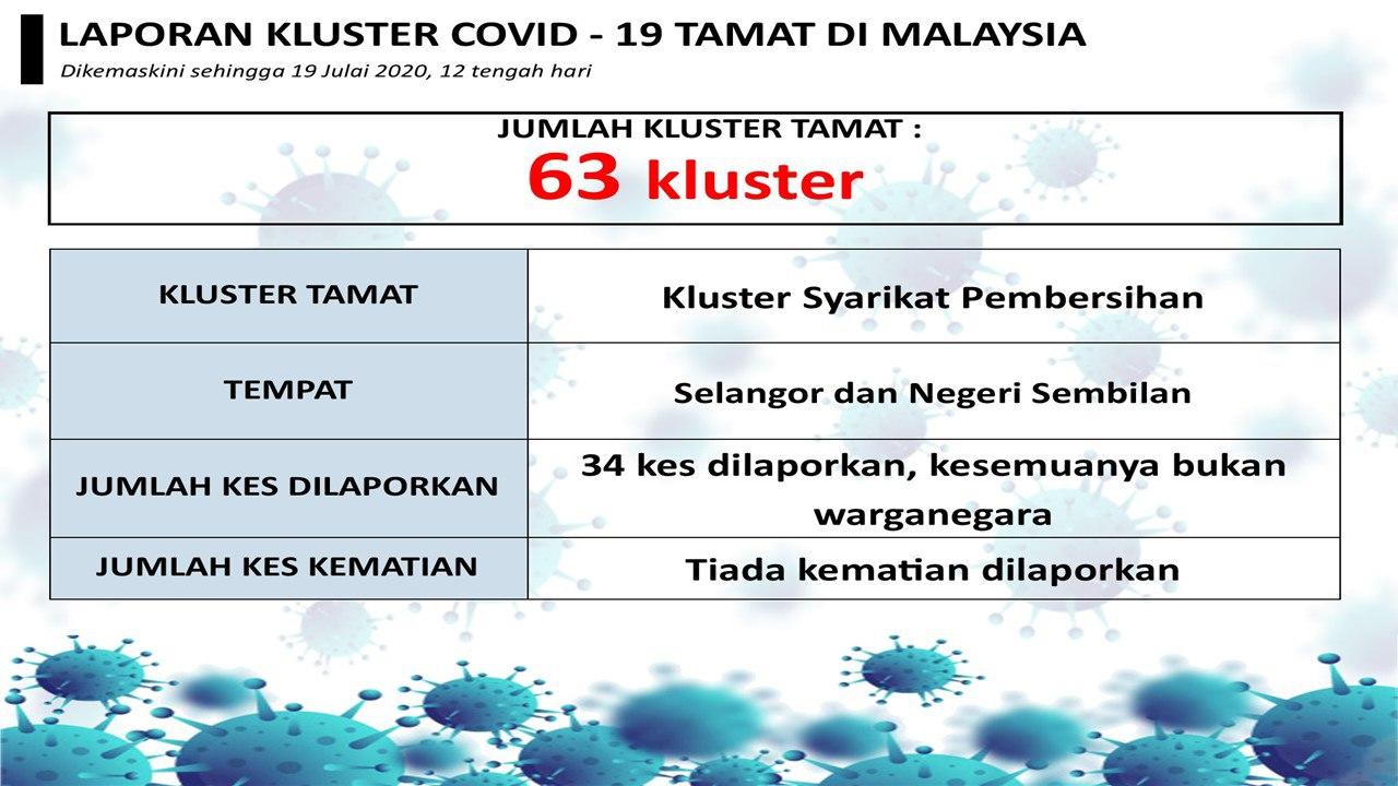 Laporan Kluster COVID-19 Tamat Di Malaysia 19/07/2020 1200 PM Asrul Siaran Media 19 Julai 2020 Jumlah paparan: 897 Rating: ( 0 Rating ) Sila beri kadar Undi 1 Undi 2 Undi 3 Undi 4 Undi 5 Facebook Twitter Seterusnya Seterusnya