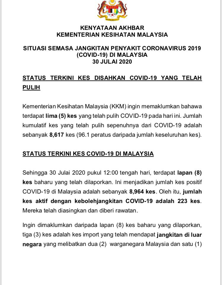 Kenyataan Media KP KKM 30/07/2020 0500 PM Asrul Siaran Media 30 Julai 2020 Jumlah paparan: 1193 Rating: ( 0 Rating ) Sila beri kadar Undi 1 Undi 2 Undi 3 Undi 4 Undi 5 Facebook Twitter Seterusnya Seterusnya