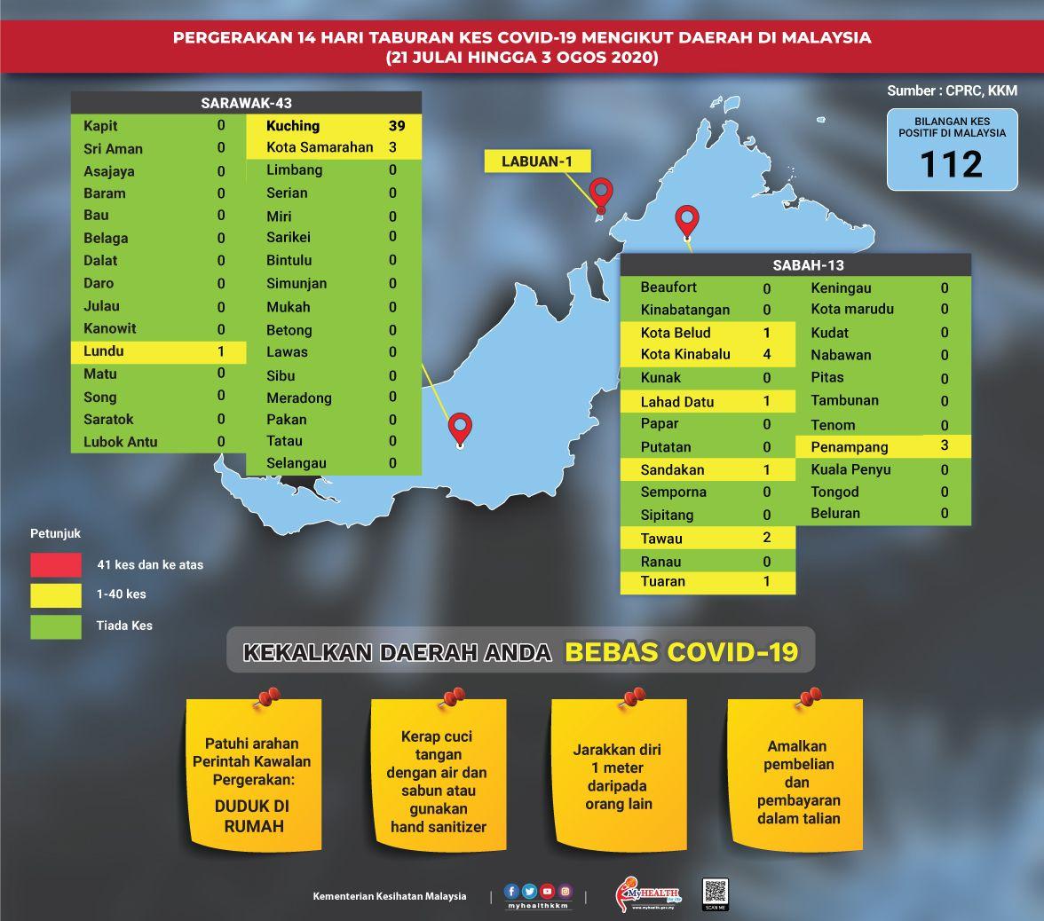 Pergerakan 14 Hari Taburan Kes COVID-19 Mengikut Daerah Di Malaysia 03/08/2020 Aiman Siaran Media 03 Ogos 2020 Jumlah paparan: 771 Rating: ( 0 Rating ) Sila beri kadar Undi 1 Undi 2 Undi 3 Undi 4 Undi 5 Facebook Twitter Seterusnya Seterusnya