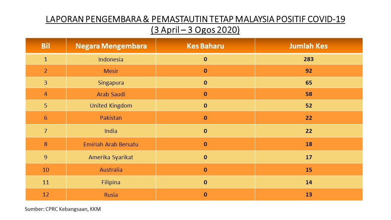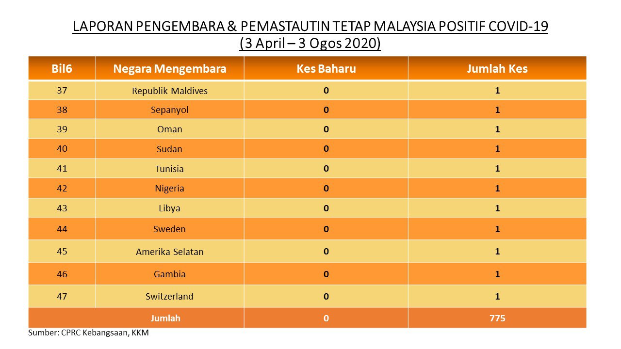 Laporan Pengembara & Pemastautin Tetap Malaysia Positif COVID-19 03/08/2020 Aiman Siaran Media 03 Ogos 2020 Jumlah paparan: 890 Rating: ( 0 Rating ) Sila beri kadar Undi 1 Undi 2 Undi 3 Undi 4 Undi 5 Facebook Twitter Seterusnya Seterusnya