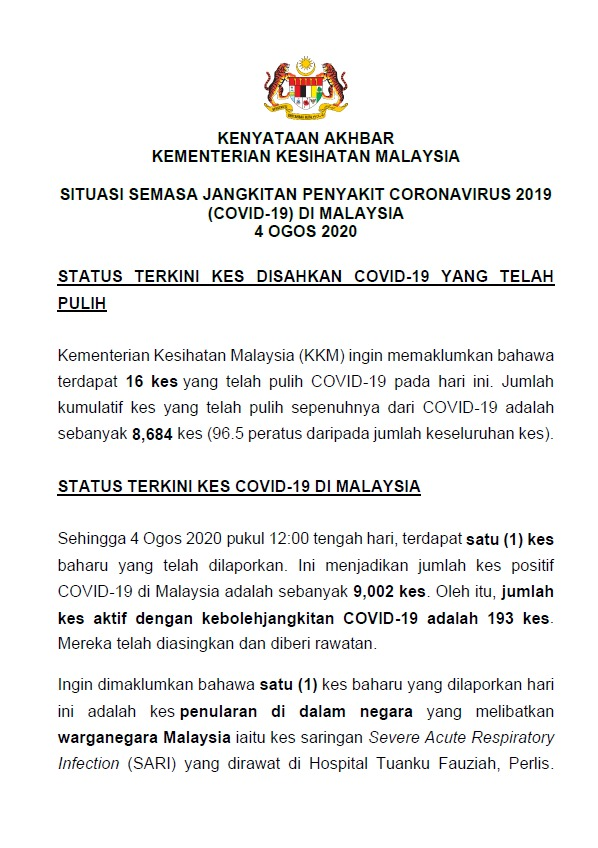Kenyataan Media KP KKM 04/08/2020 0500 PM Asrul Siaran Media 04 Ogos 2020 Jumlah paparan: 1144 Rating: ( 0 Rating ) Sila beri kadar Undi 1 Undi 2 Undi 3 Undi 4 Undi 5 Facebook Twitter Seterusnya Seterusnya